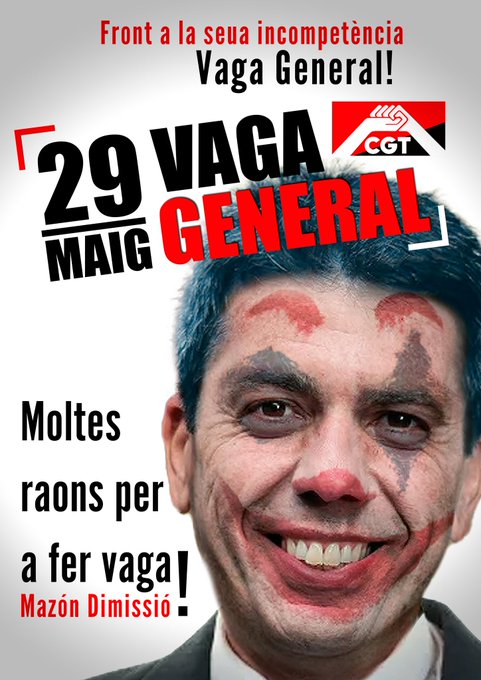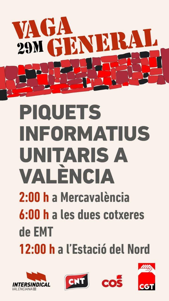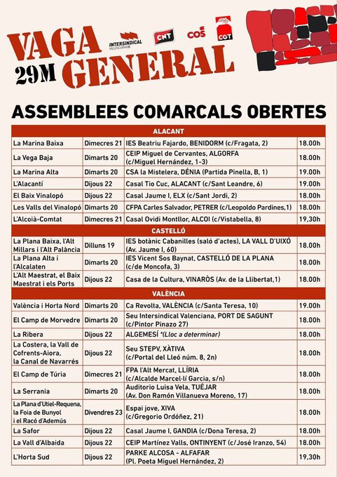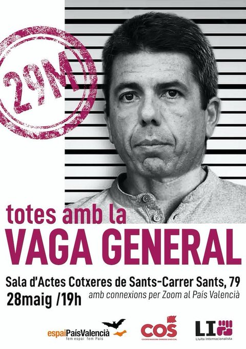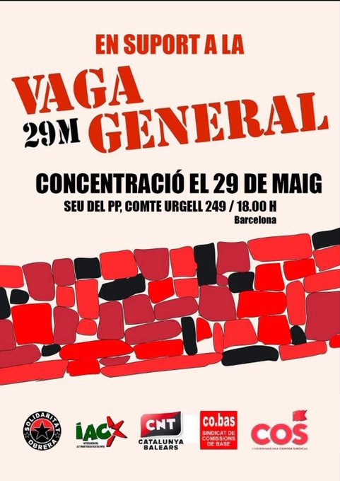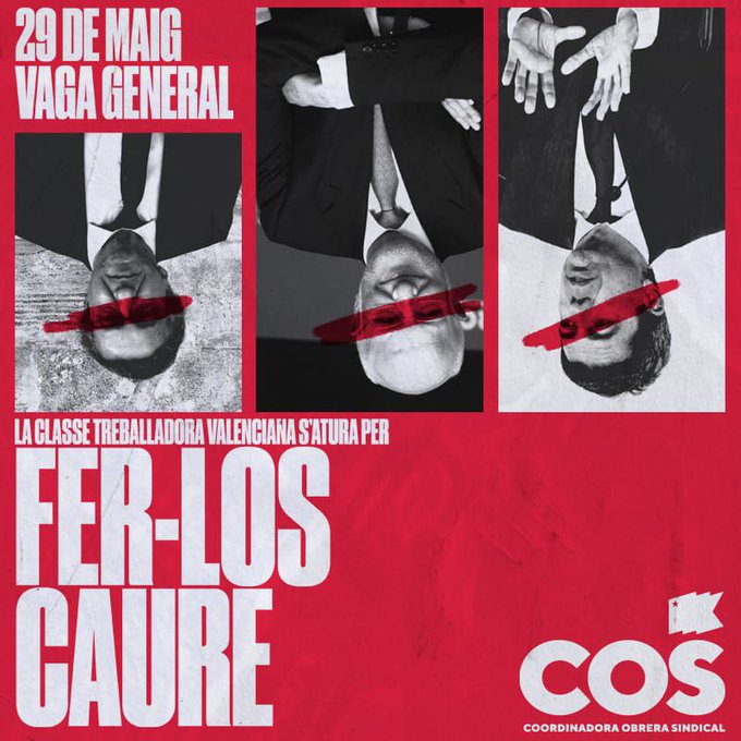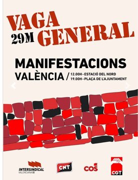 - Manifest conjunt de les organitzacions sindicals COS, CNT, CGT i Intersindical Valenciana per a la convocatòria de vaga general al País Valencià el proper 29 de maig.