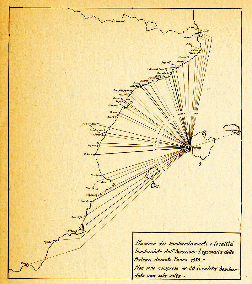Les autoritats italianes de l’època n’eren tan conscients d’aquesta il·legalitat que els seus avions volaven sense distintius de reconeixement i els pilots duien documentació falsa. La Itàlia feixista, a més d’ocupar il·legalment un país sense declaració de guerra i de destruir-hi vides i objectius civils i militars, també es va tacar amb crims de guerra i de lesa humanitat, ja denunciats a l’època en fòrums internacionals per les autoritats catalanes, basques i espanyoles[iii]. Des dels atacs contra les columnes de fugitius a la carretera entre Màlaga i Almeria, als bombardeigs de saturació contra Barcelona i desenes de poblacions, que tenien com a objectiu matances de civils; de les atrocitats perpetrades a la Mallorca ocupada pel sinistre “Conte Rossi”, als actes de pirateria contra vaixells i tripulacions mercants de països neutrals.