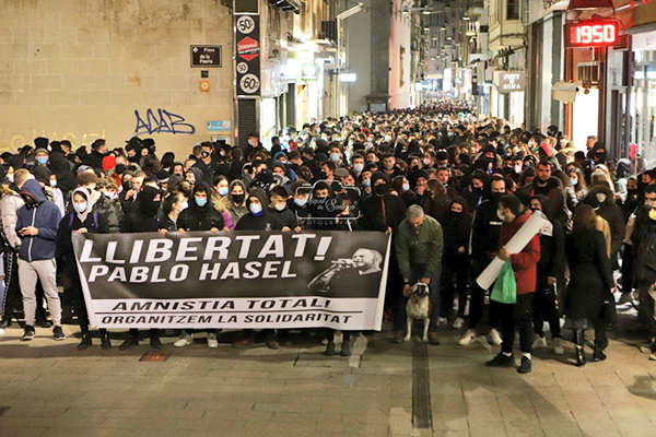 Manifestació a Lleida contra l’empresonament de Pablo Hasel, quwe segueix empresonat