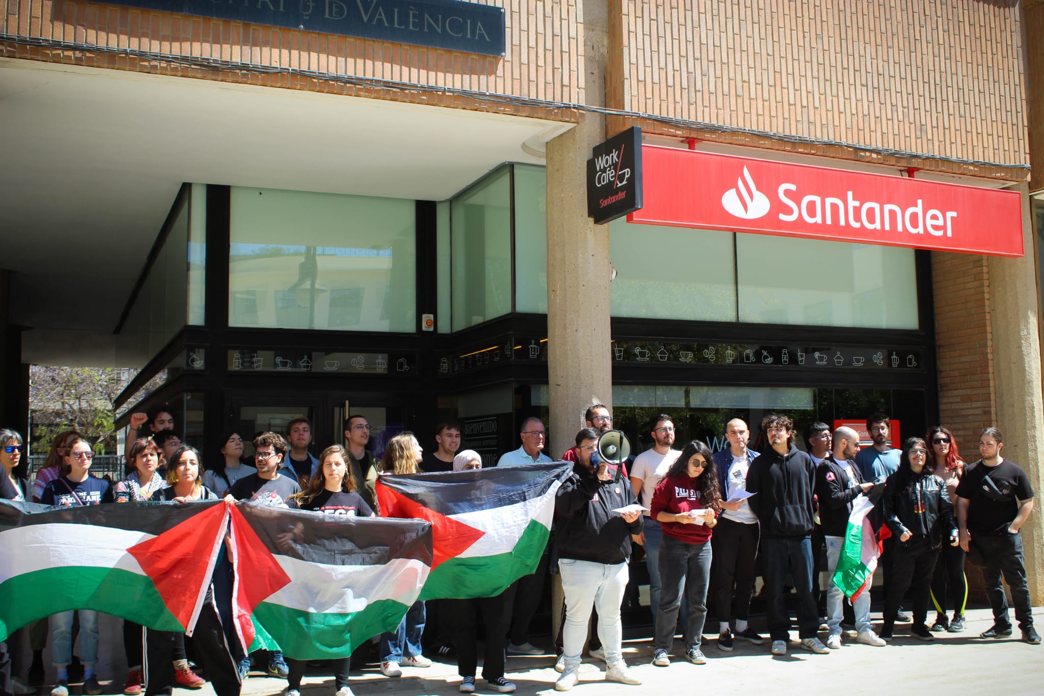 Som conscients que la Universitat de València continua mantenint relacions amb empreses i institucions que financen i suporten d’alguna manera el règim genocida d’Israel, com poden ser HP, Aigua Eden, Banco Santander, AXA, etc. Per això ocupem la nostra universitat per a exigir el fi d’aquestes col·laboracions, perquè no volem que assassinen a cap persona palestina més en el nostre nom o amb la nostra connivència. En conseqüència, demanem el trencament de totes les relacions amb empreses i institucions que col·laboren l’apartheid i genocidi del poble palestí.