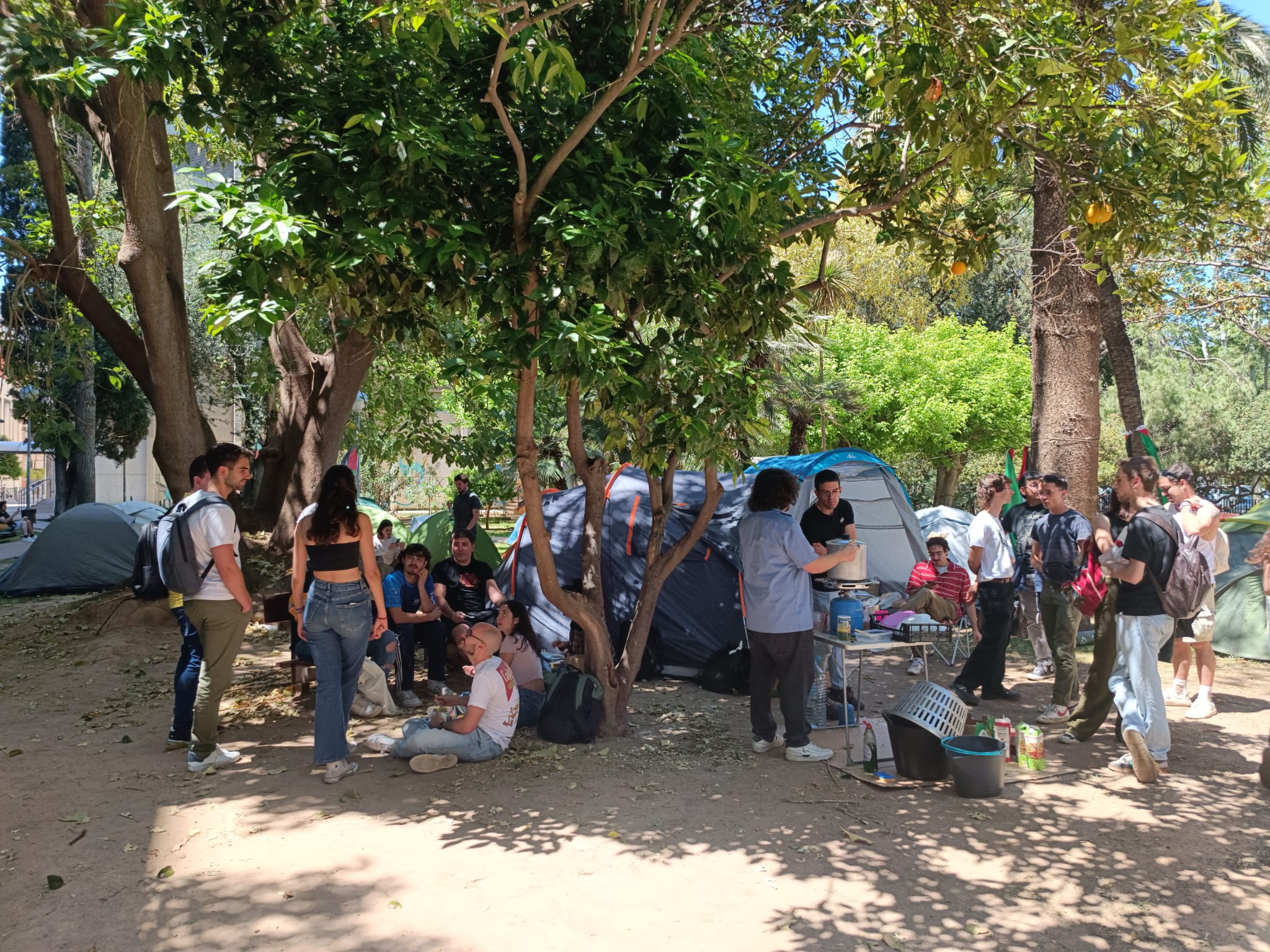 L’acampada també és una acció de solidaritat des de la nostra comunitat universitària cap a la comunitat universitària palestina. Per una banda, totes les universitats de Gaza han sigut bombardejades, i, per això, és necessari que s’establisquen acords, convenis i col·laboracions amb universitats palestines per a poder reforçar i reconstruir el sistema educatiu a Palestina. Per altra banda, exigim un compromís clar i ferm per escrit de no signar cap acord ni conveni amb institucions israelianes, ni ara ni en un futur, fins que no acaben els crims de lesa humanitat israelians contra el poble palestí i la violació sistemàtica i massiva dels drets humans.
