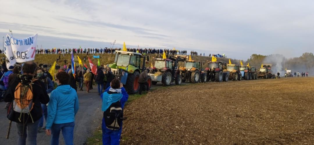 Es van envair les obres amb 30 tractors, la qual cosa indica que, contràriament a la història presentada políticament i als mitjans de comunicació pels nostres adversaris, no es tracta d’una lluita entre ecologistes d’una banda i pagesos de l’altra sinó també d’una lluita entre dos models. l’agricultura en el món pagès. En un any i mig organitzem quatre accions que cada cop augmenten en nombre de persones i també en intensitat de mobilitzacions i gestos impactants.
