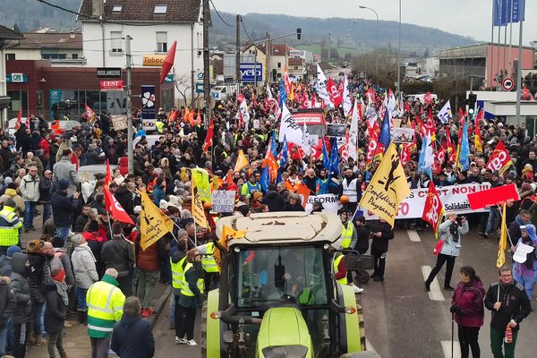 Treballadors de la CGT, i Solidaires i pagesos de la CP en una mobilització conjunta amb els Soulevements de la Terre a Besançon.