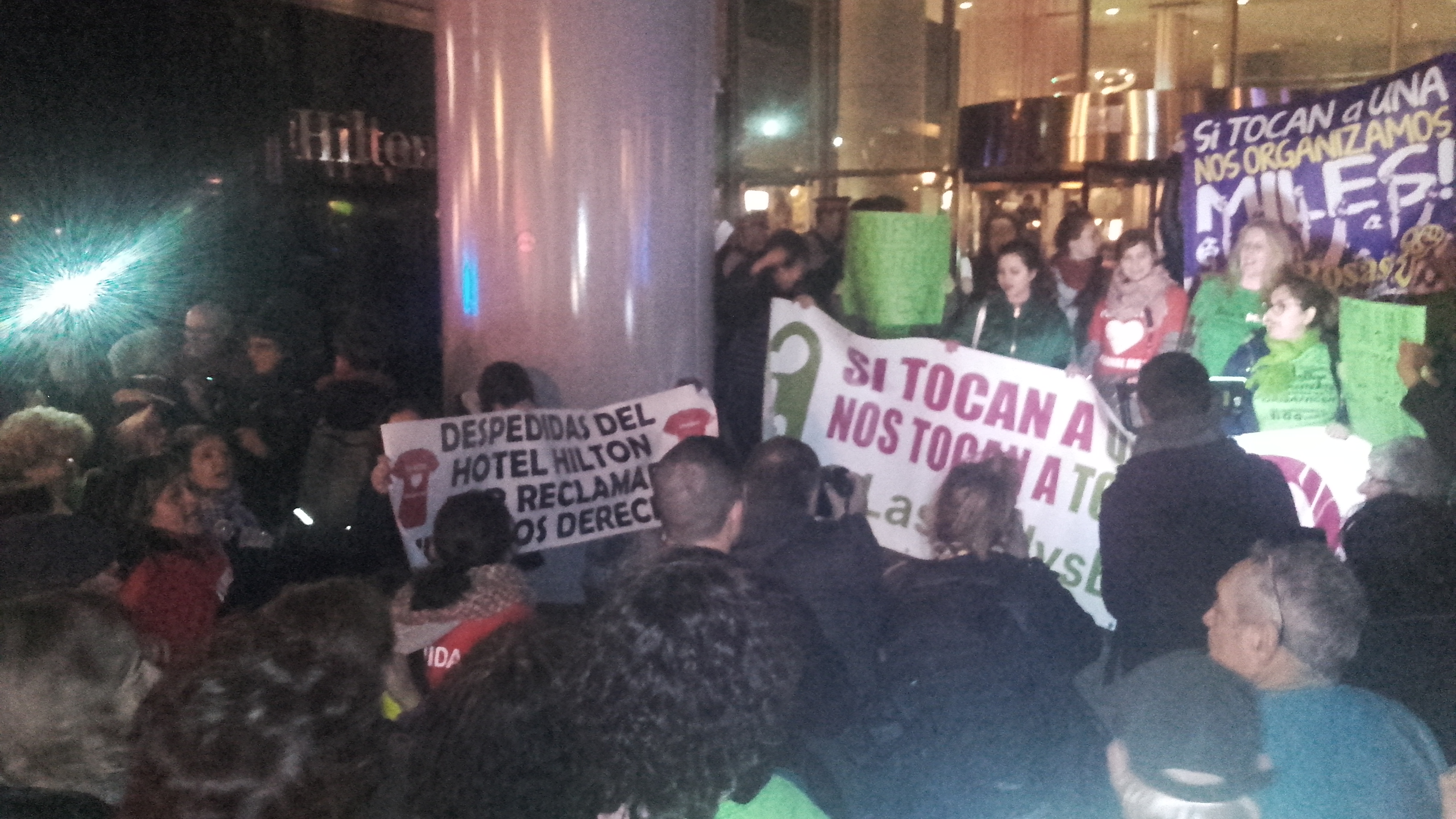 Les Kelly’s de Barcelona han aprofitat el primer dia del MWC per fer sentir les seves reivindicacions. Fins a 200 persones s’han congregat a l’hotel Hilton de Diagonal Mar. La mobilització ha estat sorollosa de principi a final. Les cambreres de pis lluitadores han aconseguit lliurar el seu manifest amb les reivindicacions a la gerència de l’hotel.
