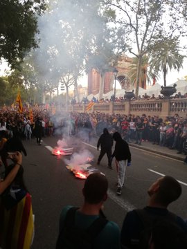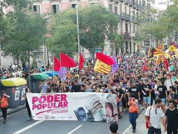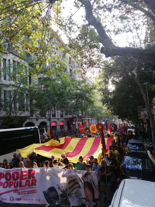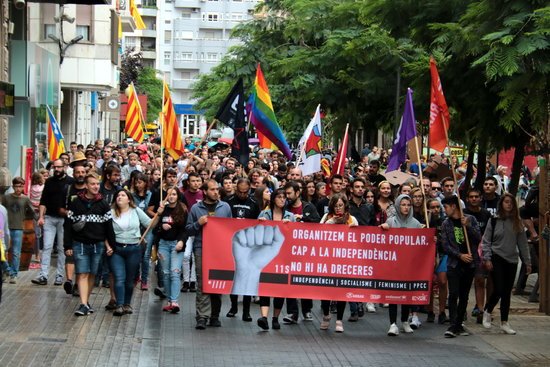 Per la seva banda, l’esquerra independentista, que sembla començar a desmarcar-se del seu seguidisme del sobiranisme governamental dels darrers anys, convocà les pròpies mobilitzacions de cada any, que tornaren mobilitzar milers i milers de persones que uneixen la reclamació d’independència dels Païso Catalans a la transformació socialista i feminista, però que com cada any han estat silenciades per la majoria mitjans de comunicació. Així, a Barcelona el moviment convocava actes al llarg de tot el dia, amb la mobilització de centenars de joves al matí, en els actes d’Arran d’homenatge a Gustau Muñoz, jove assassinat per la policia espanyola la diada de 1978, i la manifestació juvenil. Més d’un miler de persones participaren posteriorment en la marxa de Rescat per la llibertat de tots els presos polítics. L’organització de suport als presos, que ha anunciat la seva dissolució, celebrava el recent alliberament de Marina Bernadó, que justament ahir coneixia l’absolució del seu darrer judici, amb què la fiscalia havia volgut tornar a empresonar-la sense èxit, després que el tribunal especial reconegués que ja havia complert condemna pels mateixos fets en presons franceses.