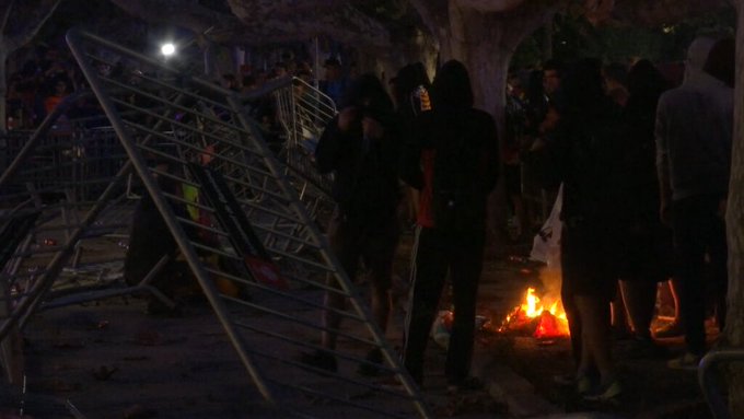 Ja al vespre a Barcelona centenars d’independentistes es concentraren davant el parlament autonòmic i es visqueren moments de tensió i enfrontaments amb els mossos, contra els quals es llençaren alguns objectes i petards. Es cremaren també banderes espanyoles. Entre els manifestants regnava tant la indignació pel paper dels partits polítics protagonistes del procés com en molts casos una acusada confusió i desorientació política, aclamant alguns d’ells com a referent a Puigdemont, el principal responsable de la no aplicació del resultat del referèndum, mentre increpaven els mossos i els responsables del govern del seu partit.