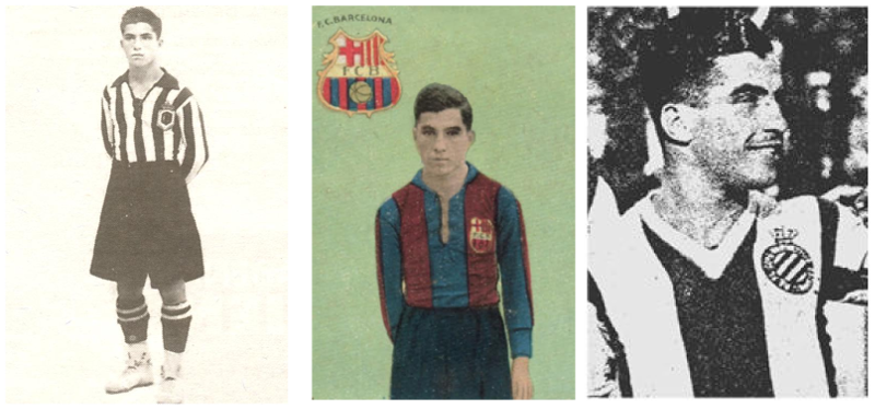 José Padrón amb l’equipació del Victoria, el Barça i l’Espanyol.