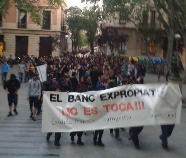 l dilluns 23 de maig de matí, els mossos d’esquadra feien un gran desplegament al barri de Gràcia de Barcelona i entraven al Banc Expropiat per desallotjar-lo. Aquest espai de la Travessera de Gràcia, una antiga oficina bancària, portava des de 2011 okupat, i era el centre d’una important activitat. Punt de trobada de diverses entitats i assemblees, punt d’informació de lluites populars, i també un lloc on els veïns i veïnes amb menys recursos podien trobar roba i menjar de forma gratuïta, fruit de la solidaritat i col·laboració entre la gent.
