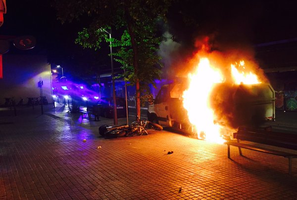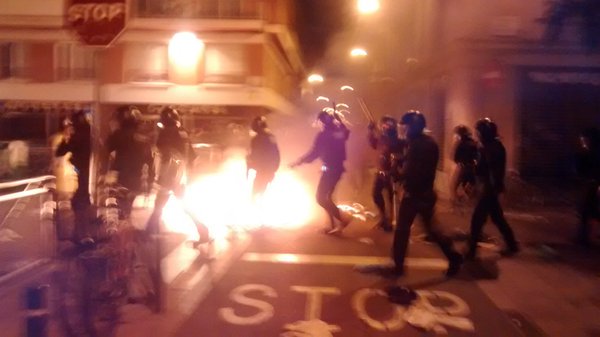 Després de les càrregues començaren els enfrontaments, quan grups de manifestants plantaren cara a la violència policial, aixecant barricades, travessant vehicles i responent amb pedres a la pluja de trets dels policies.
