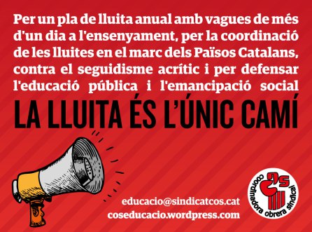 “cal fer una crida al sindicalisme de classe per abraçar també aquestes treballadores i donar-los espai i discurs, i un projecte de futur encoratjador que funcioni de base en la lluita per un model educatiu 100% públic i gratuït”