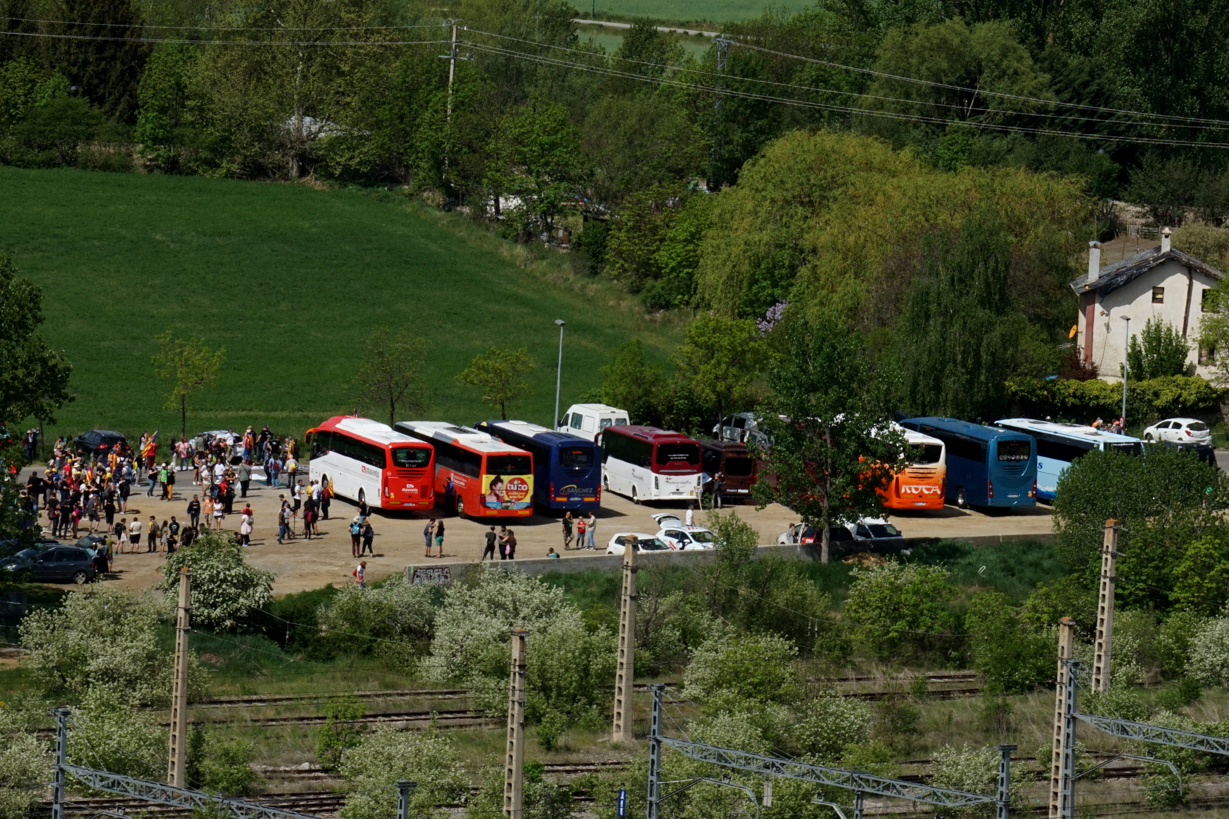 S’acosta l’hora de la mobilització i a quarts de dotze els autocars van aparcant a l’espai habilitat al recinte firal