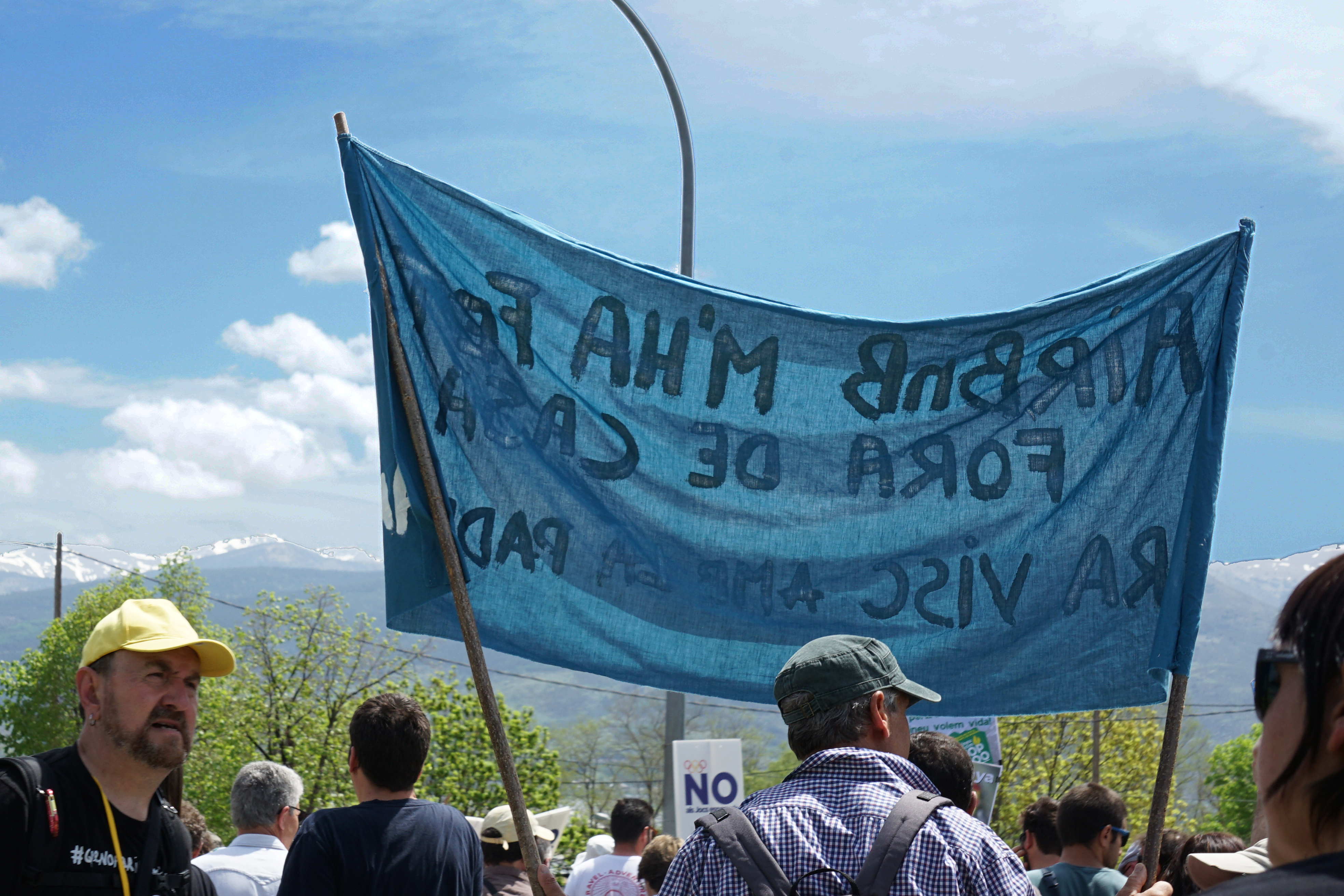 Un manifestant recorda com el paper d’AirBnB en l’expulsió de veïnes de les zones turístiques