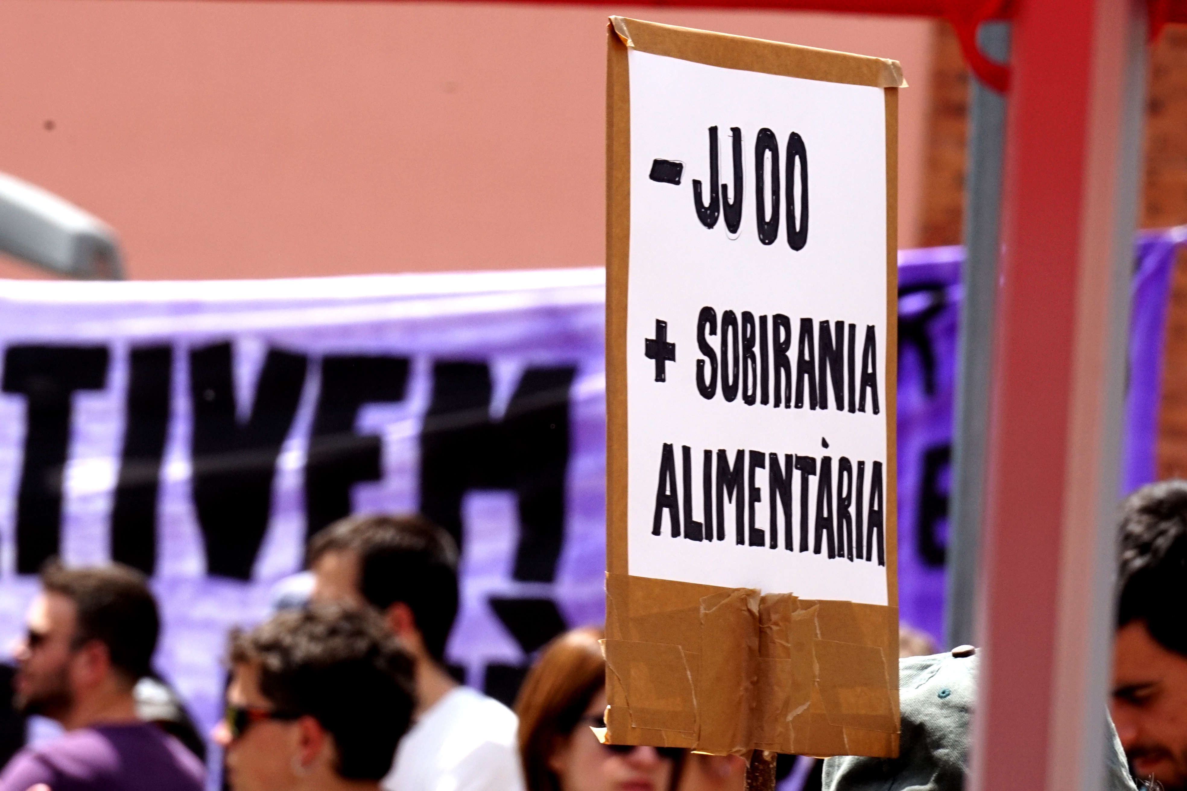 Darrere seu, moltes manifestants han confeccionat els seus propis cartells i lemes i avancen sota un sol que no donarà treva en tot el matí