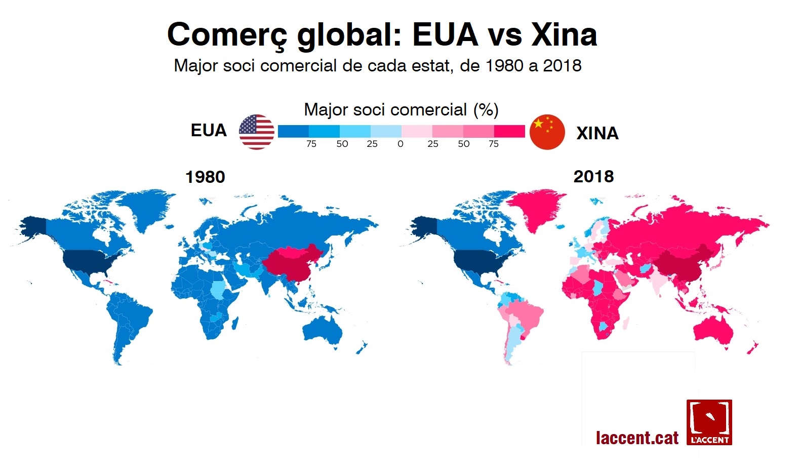 Un altre element, que sovint passa més inadvertit, és la guerra per la moneda. La preponderància del dòlar ha proporcionat als Estats Units enormes beneficis i un alt poder en la política financera global. Les línies obertes per la Reserva Federal dels Estats Units a altres bancs centrals després de la crisi financera de 2008, i que s’han repetit amb la crisi del coronavirus, n’han exclòs a la Xina. I a la vegada, Washington pot afrontar la crisi associada al COVID-19 amb l’emissió de més moneda per a injectar recursos a la seva economia. En paral·lel, el Banc Popular de la Xina ha exposat la seva intenció de posar en circulació la seva moneda virtual, anomenada e-RMB, per substituir el dòlar en les operacions internacionals. Hem de recordar que el plantejament d’utilitzar altres monedes pels intercanvis comercials ja fou un dels motius de la invasió a l’Iraq de 2003, quan el govern de Saddam Hussein va plantejar deixar d’utilitzar els petrodòlars i utilitzar l’euro per les transaccions petrolieres; o la de Líbia de 2011, quan el govern de Gadafi va plantejar la creació d’una moneda africana.