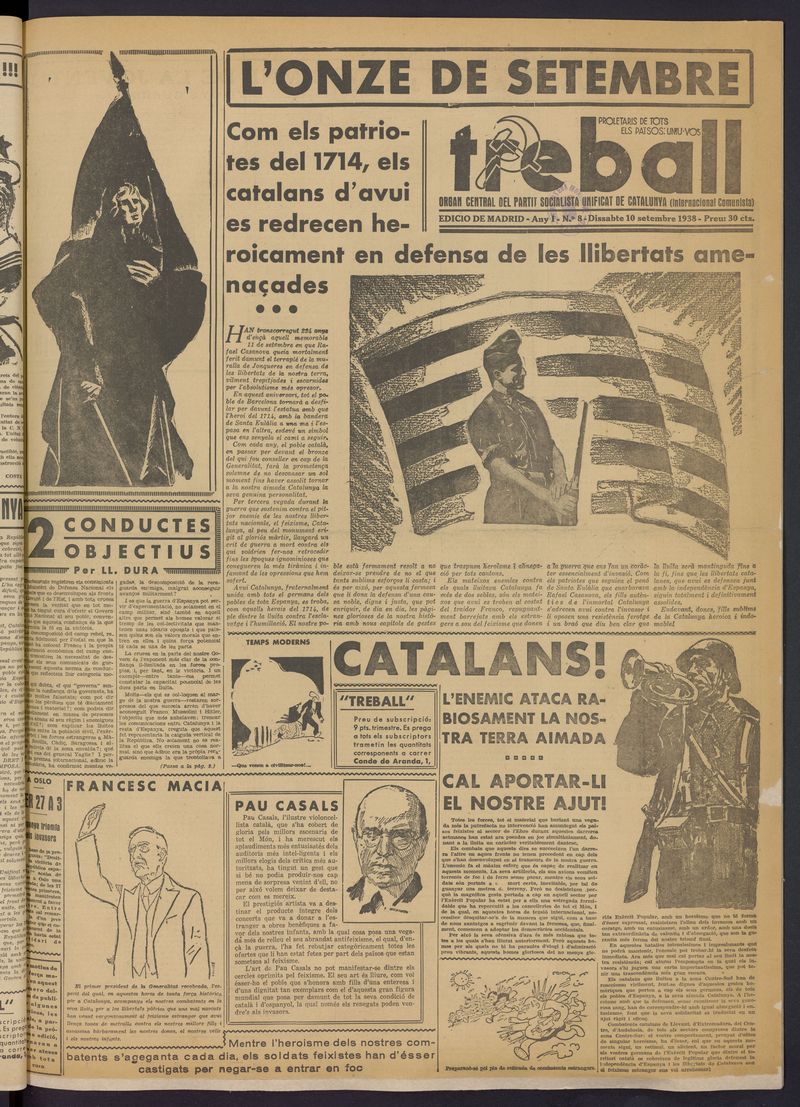 Edició del diari comunista català ‘Treball’ del setembre de 1938.
