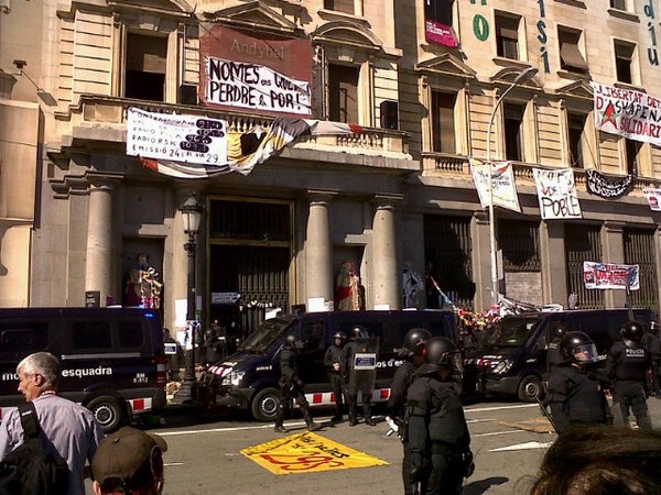 A les 15.18h els Mossos d’Esquadra han trencat violentament la porta d’entrada del banc ocupat al centre de Barcelona i han agredit la gent que es trobava dins fent el seguiment de la vaga. Segons les últimes notícies hi hauria diversos detinguts i ferits. Algunes de les persones que es trobaven a l’edifici ja han pogut sortir, però encara queda gent dintre.