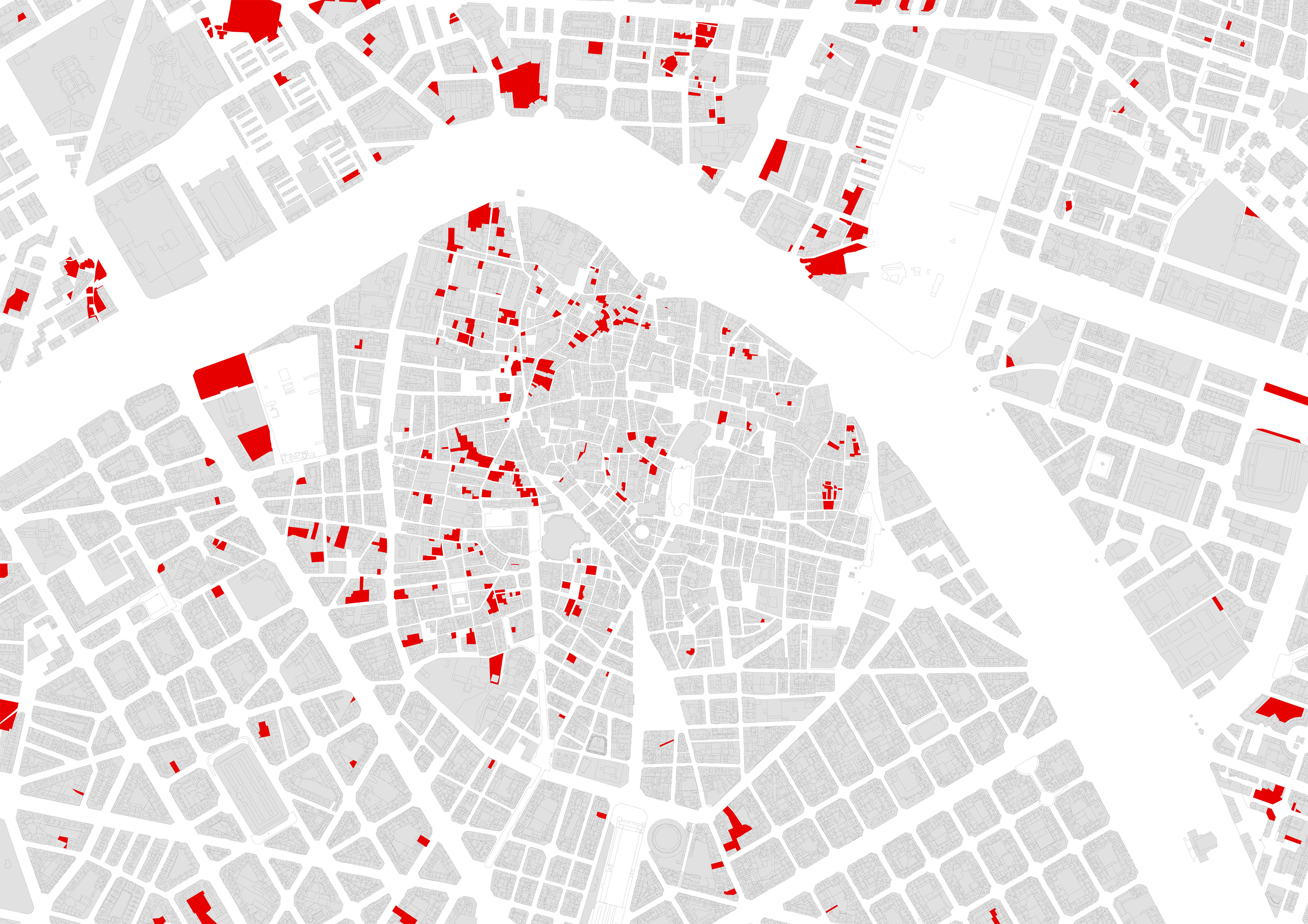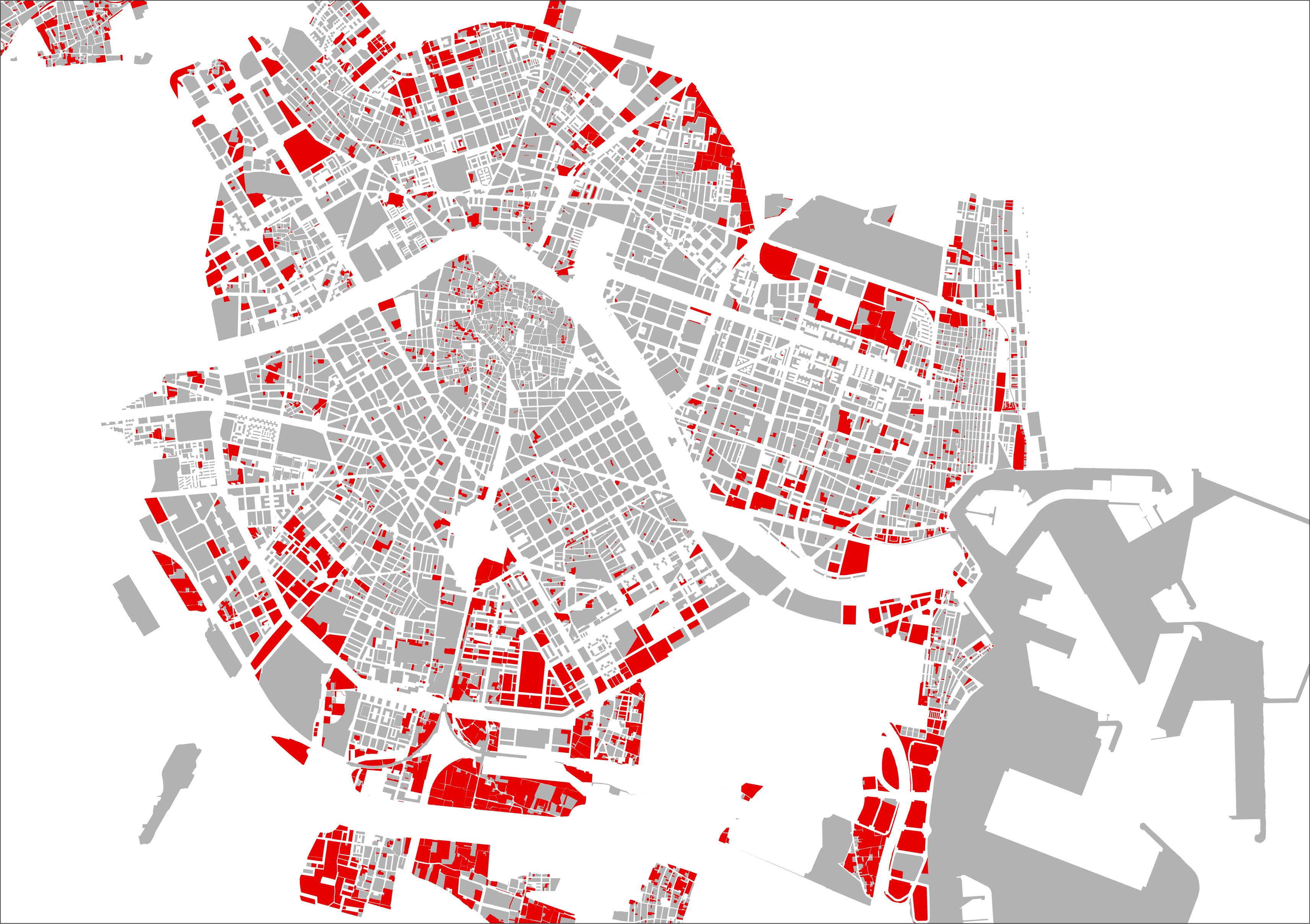 En vermell, solars no edificats a Ciutat Vella Elaboració: Pau Ginés