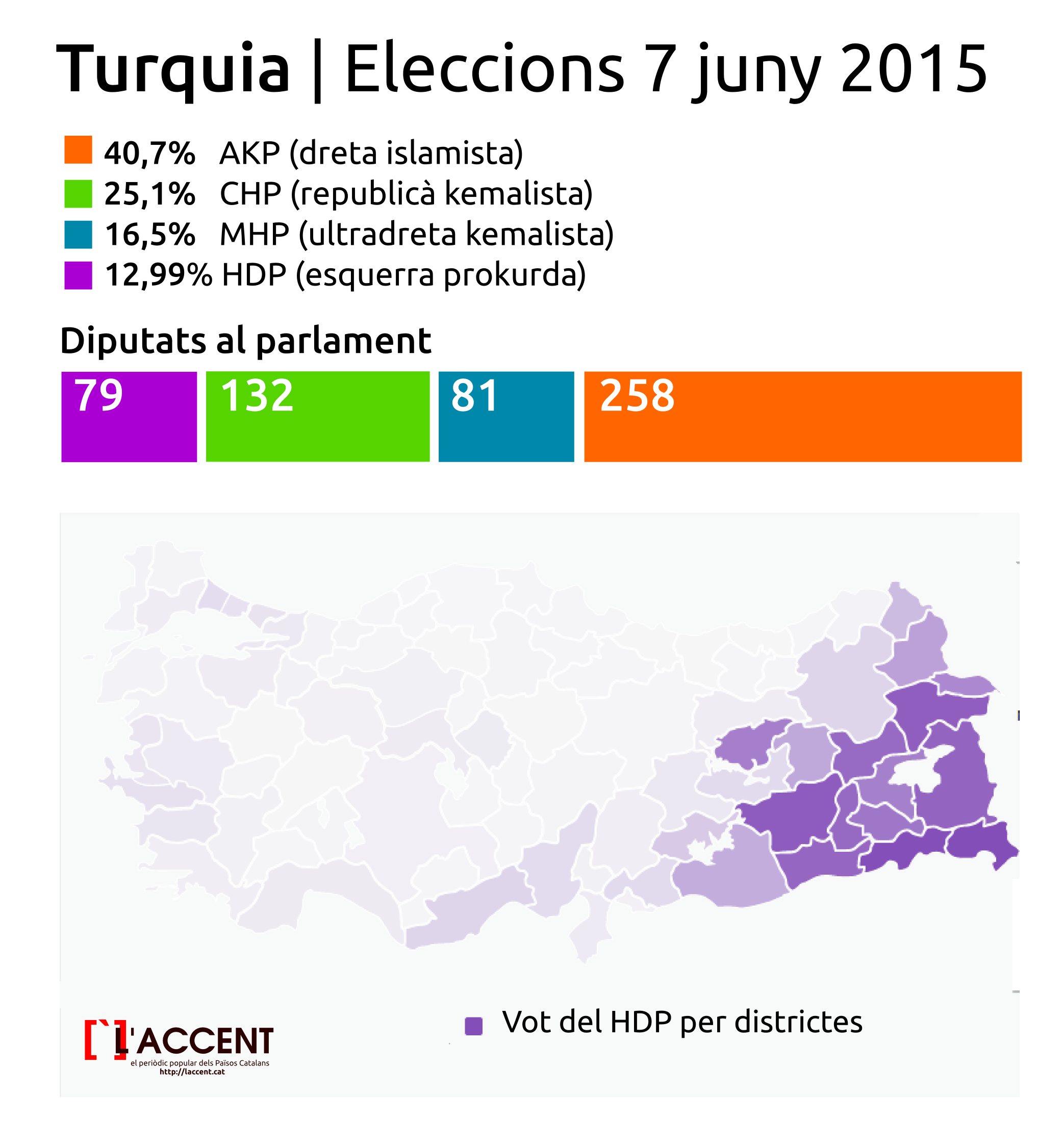 Les eleccions legislatives a Turquia celebrades aquest diumenge van registrar un 13,11% dels vots pel Partit Democràtic dels Pobles (HDP), de tendència pro kurda. Precisament, l’HDP havia apostat per unir la lluita del poble kurd amb la lluita de l’esquerra turca. Els resultats han donat la raó a aquesta aposta, ja que la formació ha obtingut 80 escons al parlament. “El partit ha sabut interpretar l’esquerra trencadora i anticapitalista”, afirma el portaveu del Kurdiscat, Jordi Vàzquez. A tall d’exemple, l’HDP ha exercit de paraigua per les reivindicacions dels drets del col·lectiu LGBT o de les persones amb discapacitat, i de la mateixa manera s’ha convertit en el representant de les minories com els gitanos, els cristians o els armenis. “S’ha convertit en la veu dels sense veu, en la línia del confederalisme democràtic i amb el moviment kurd com a pal de paller”, resumeix Vàzquez.