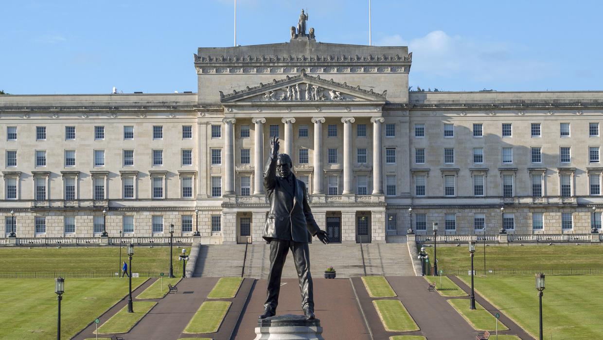 El Parlament de Stormont, amb l’estatua del líder unionista James Carson.