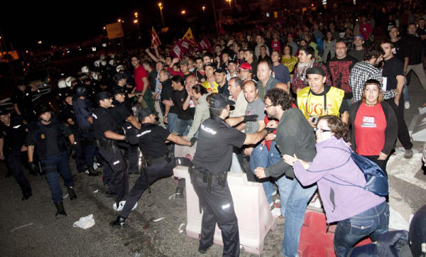 L’acció dels piquets ha estat acompanyada per un gran desplegament policial que ha actuat amb brutalitat en més d’una ocasió, segons han denunciat els assistents. A Alacant, dos membres dels piquets que acudien al Corte Inglés han estat detinguts i no han quedat en llibertat fins passades les 17h de la vesprada. A València, el piquet d’estudiants ha rebut una càrrega després d’un tall de carretera. La intervenció de la policia ha acabat amb un treballador ingressat i amb la clavícula trencada.