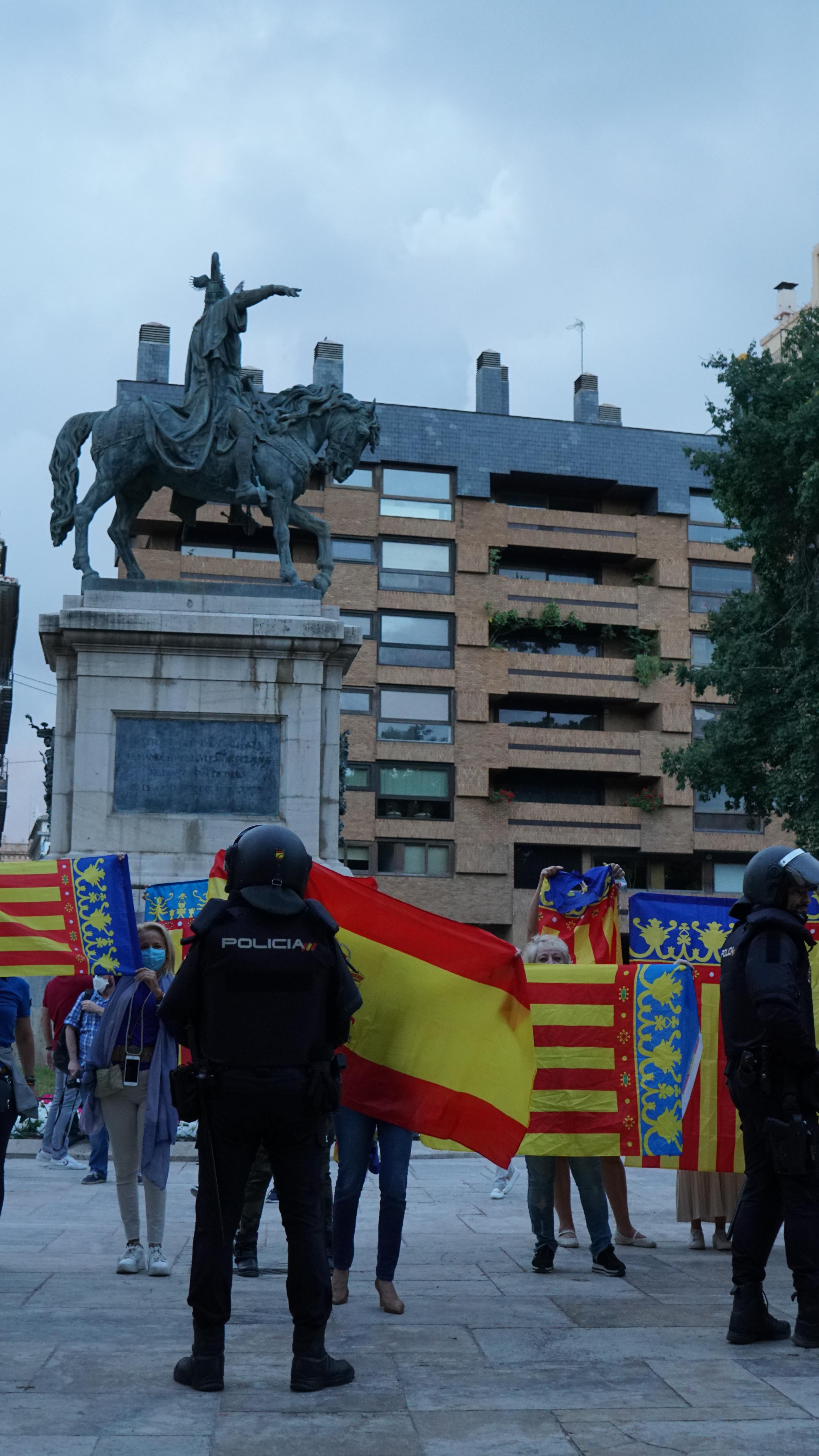 15. Petits grups de provocadors s’apleguen davant de l’estàtua de Jaume I.