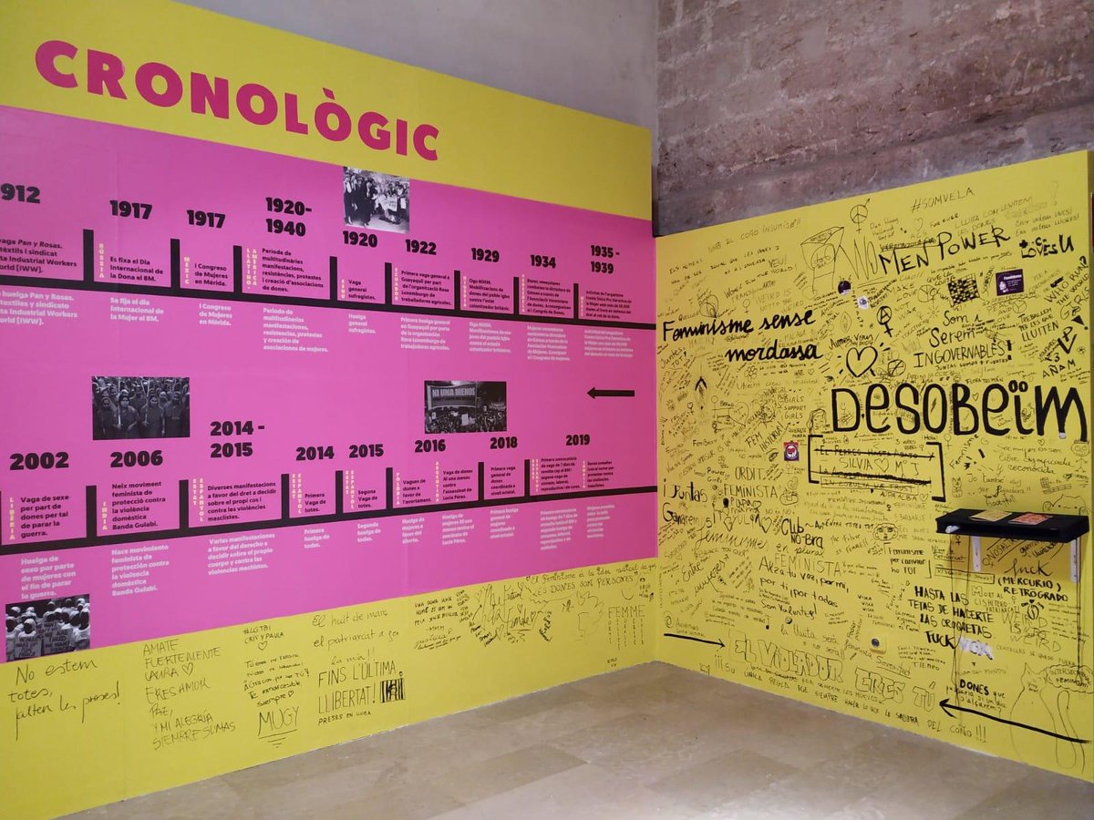 L’exposició tenia una potent imatge visual que, tot ajuntant text i imatges, aconseguia traçar un eix cronològic de la lluita feminista des del segle XIX fins a l’actualitat, com ens expliquen les Andròmines quan els preguntem per la seua font d’inspiració: