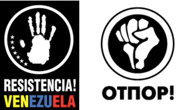 Amb una gran quantitat de diners dels oligarques libertarians i els vestits del “soft power” del govern dels Estats Units, el quadre veneçolà radical va portar les tàctiques d’Otpor als carrers, juntament amb una versió del logotip del grup.