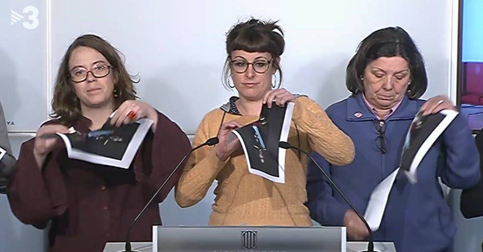 Per la seva banda la CUP demanava la destitució del Conseller d’Interior Jordi Jané, en una compareixença en què els seus diputats esquinçaren fotografies del monarca espanyol. Mireia Vehí afirmà que “Ni el govern espanyol ni la Conselleria d’Interior aturaran el referèndum”. La Delegació del Govern espanyol ha anunciat que portarà aquest gest dels diputats a la fiscalia.