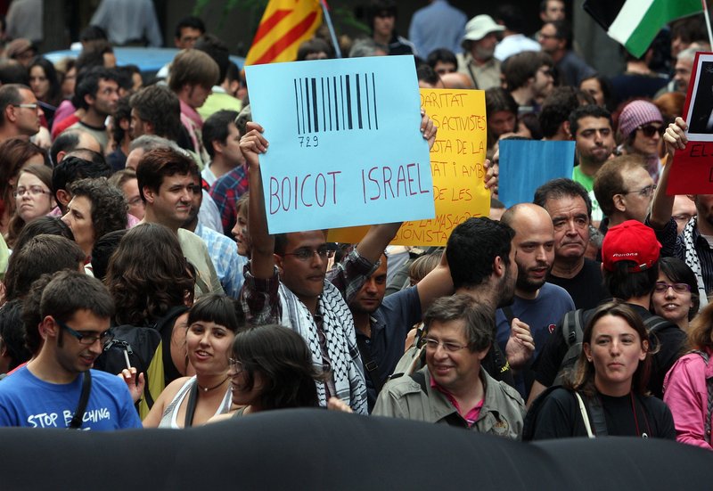 Unes 2.000 persones es van manifestar a Barcelona dilluns 31 de maig. Primer es van concentrar davant l’oficina de relacions comercials entre Catalunya i Israel, situada a Travessera de Gràcia, per anar després en manifestació fins a davant la seu de les institucions europees al passeig de Gràcia.