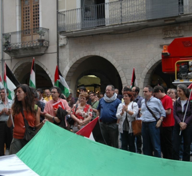 Entre 80 i 100 persones s’han manifestat aquesta vesprada per mostrar la seua solidaritat amb els cooperants propalestins i el rebuig i indignació per la mort i detenció dels tripulants de la “flotilla”, que pretenien trencar l’embargament a que està sotmès la població de Gaza per dur 10.000 tones d’ajuda humanitària.
