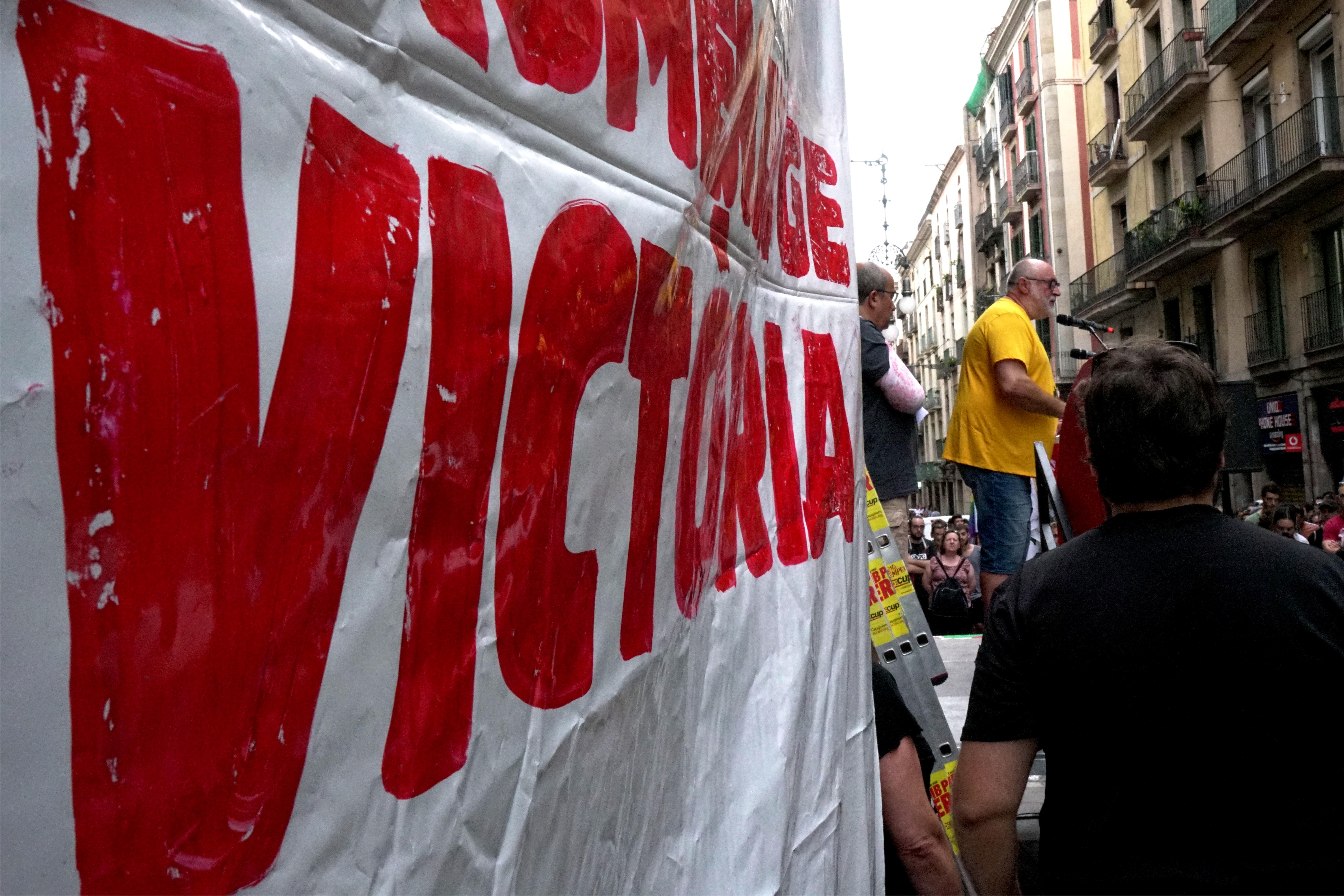 La pancarta ha arribat fins a l’escenari de la plaça Comercial, i aquesta s’ha anat omplint mica en mica fins a vessar