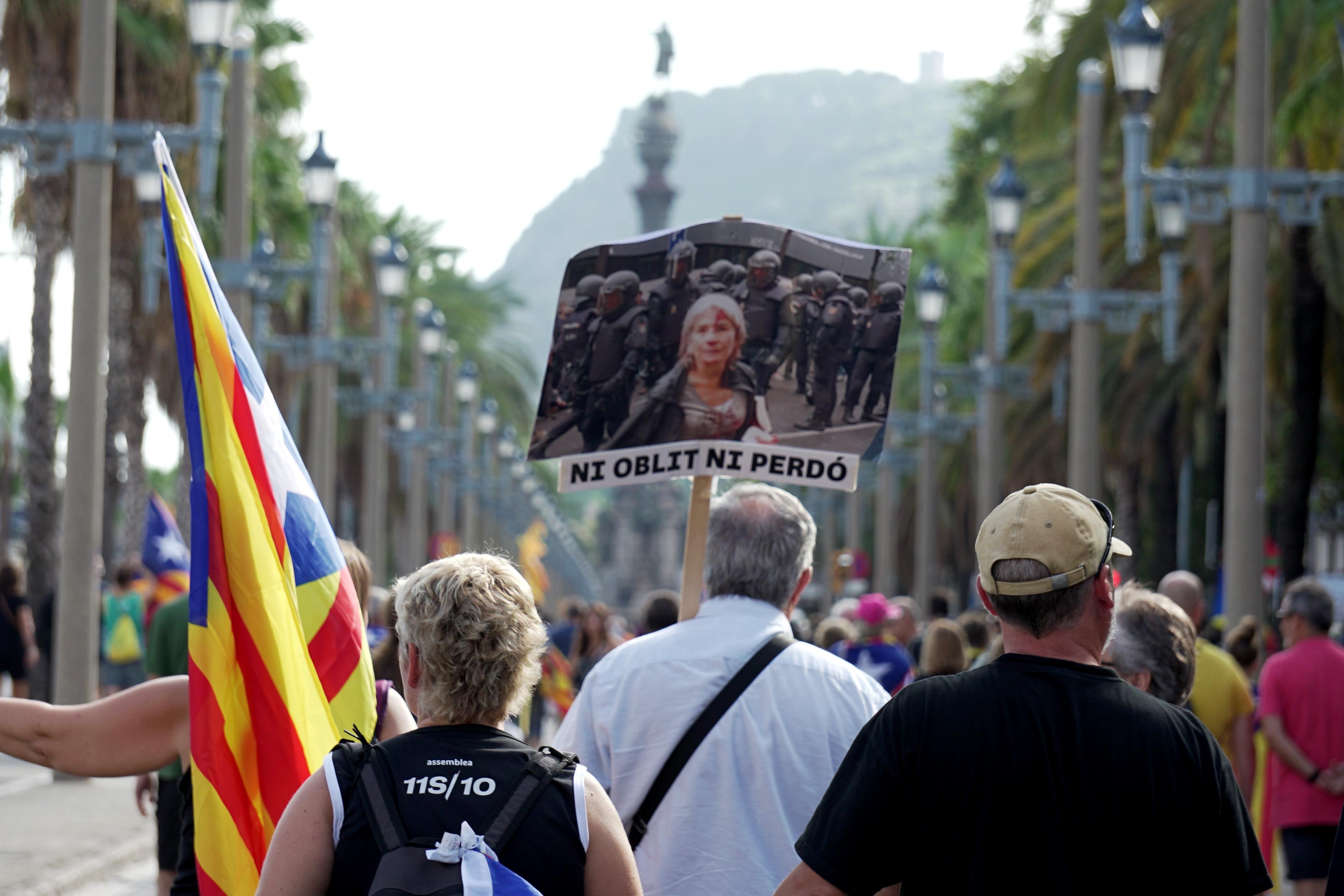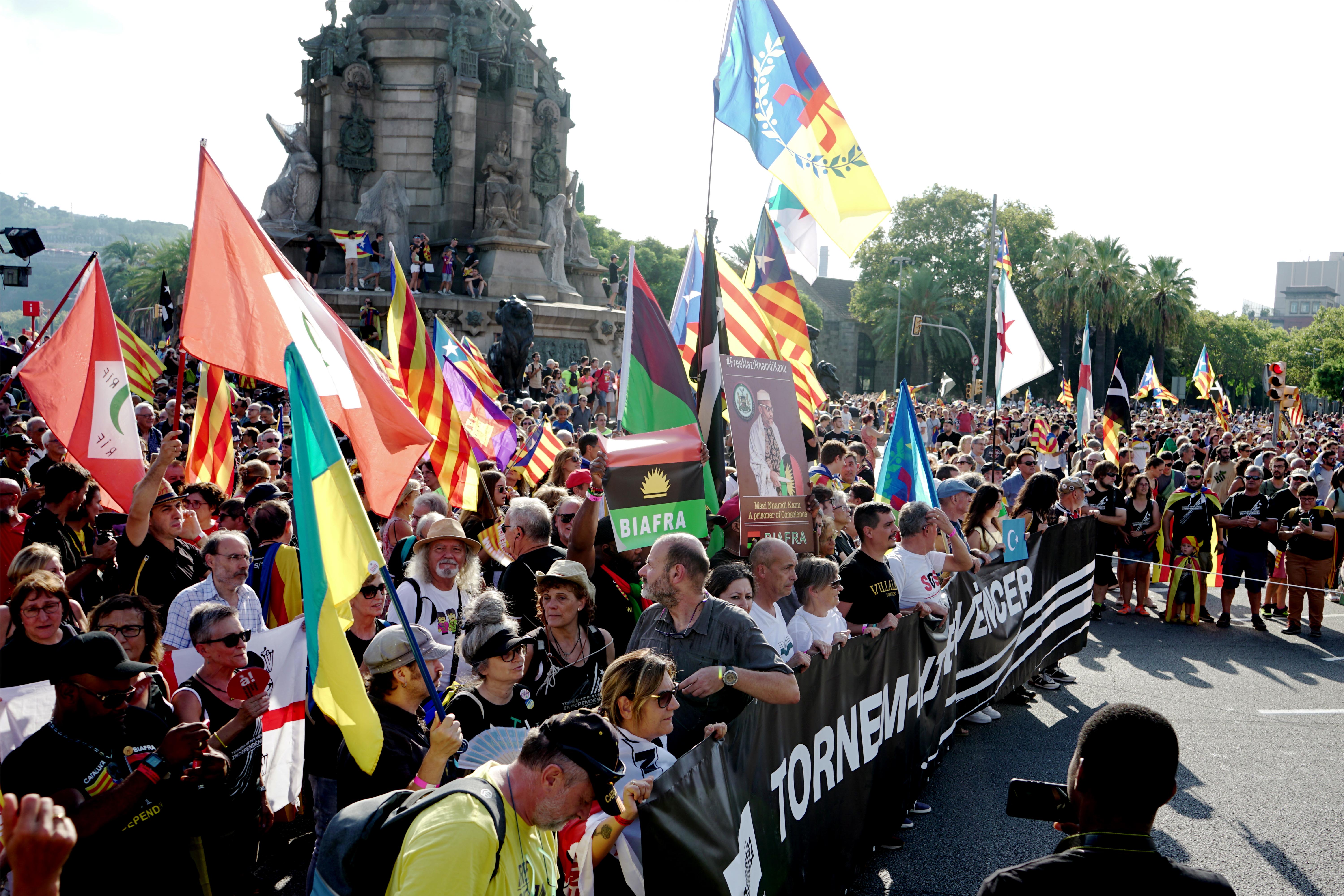 Passeig de Colón ja és ple fa estona i molta gent fa camí cap al Paral·lel, cadascú amb la seva reivindicació