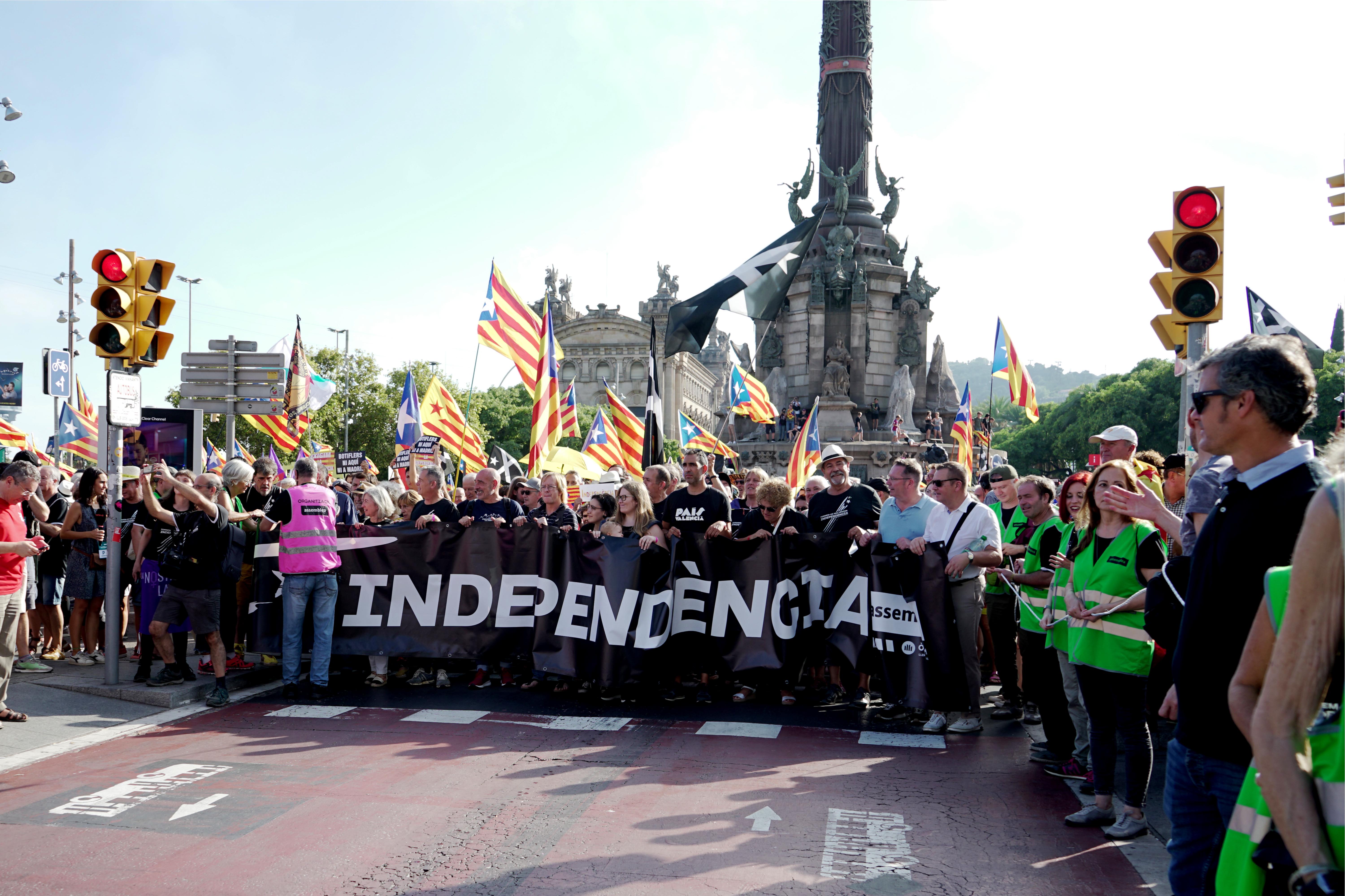 La capçalera de la mobilització arriba dividida a Colom, dues pancartes discorren per banda i banda del passeig i milers de manifestants al darrere