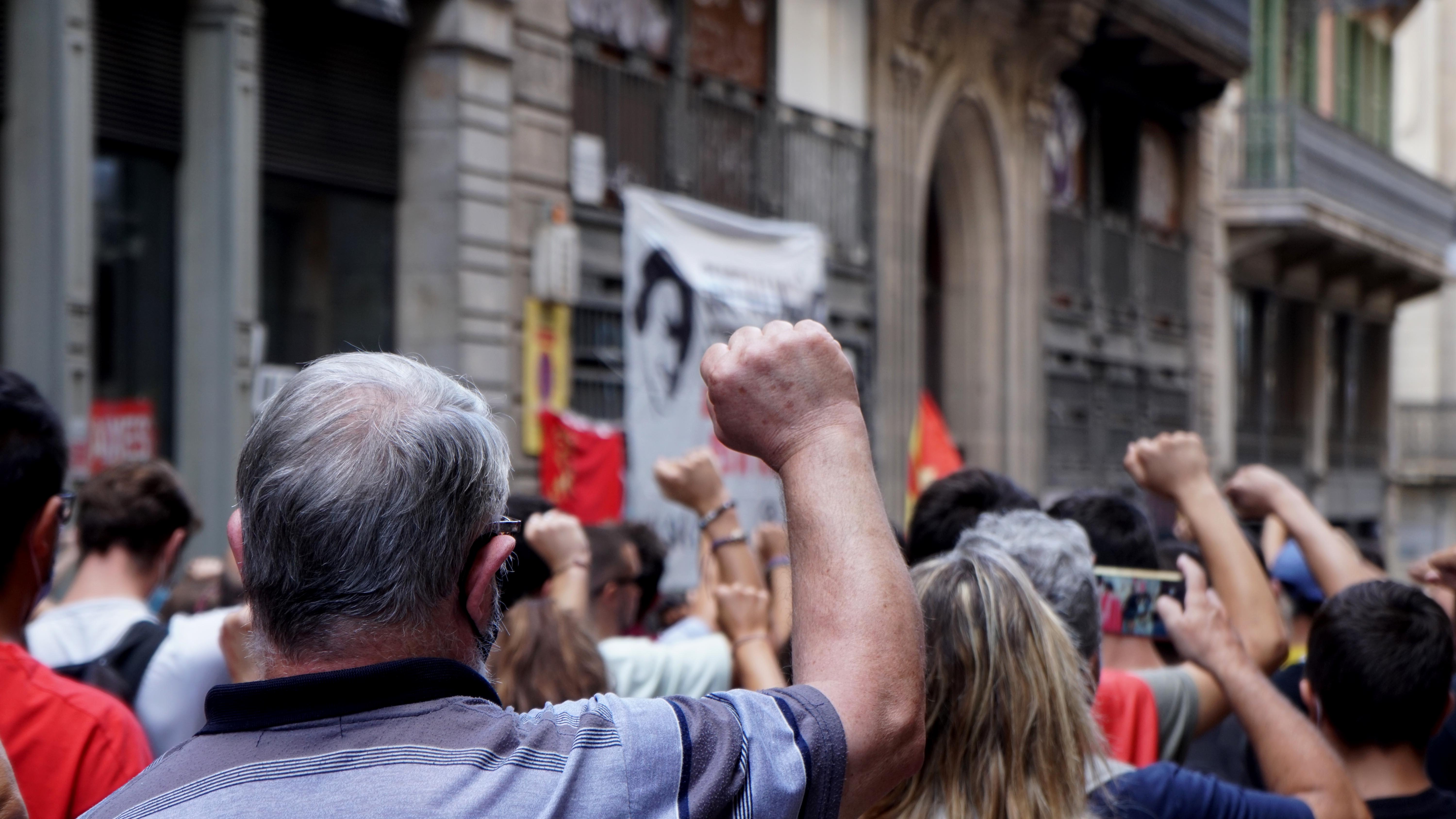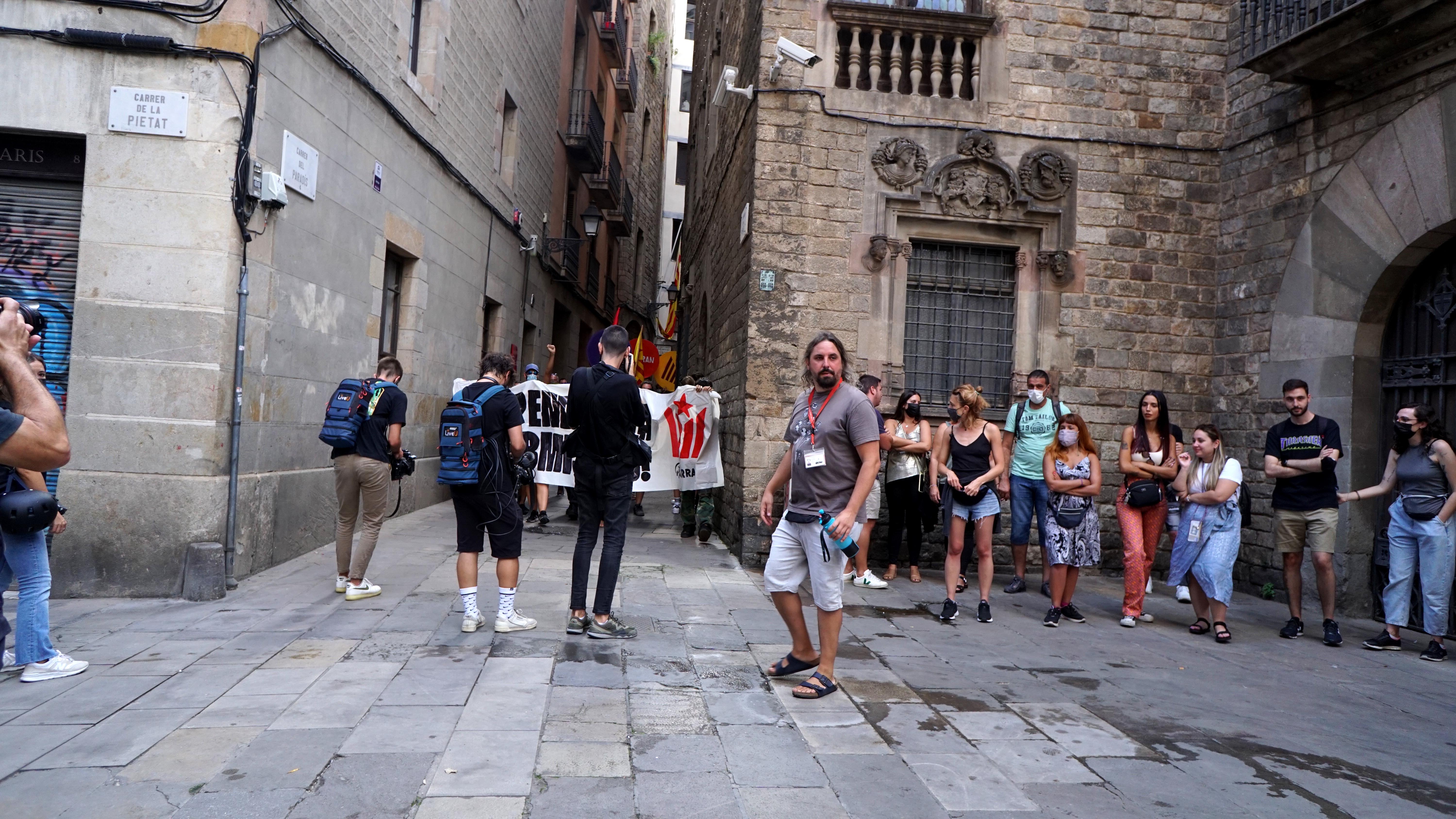 <dd class="wp-caption-text gallery-caption" id="gallery-40-26138"> Un guia turístic s’afanya a moure el grup de visitants davant l’arribada de la manifestació a tocar de la Catedral. </dd>