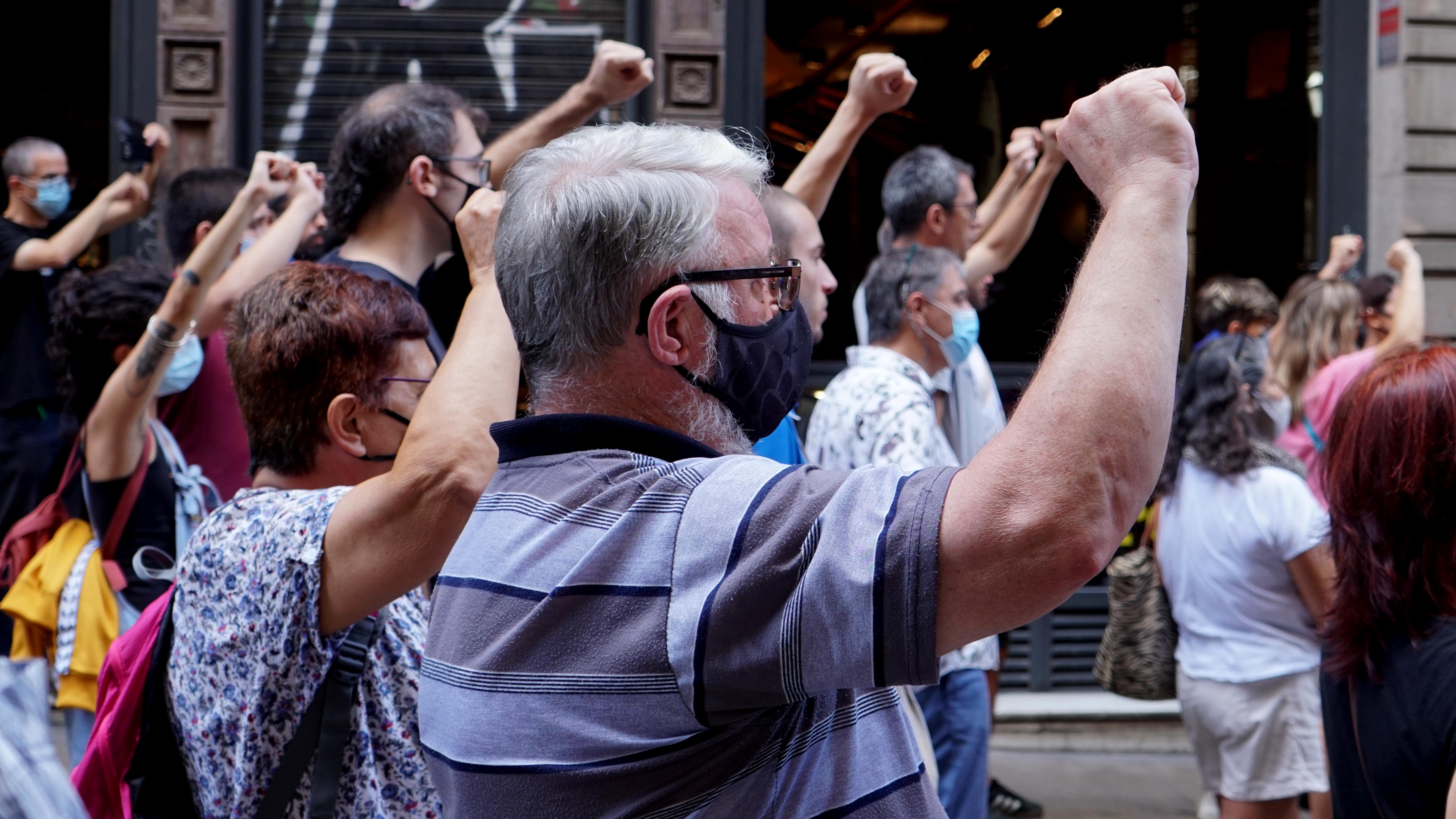 <dd class="wp-caption-text gallery-caption" id="gallery-40-26152"> A l’arribar a la plaça comercial les persones que ja hi eren han rebut la pancarta amb aplaudiments. </dd>