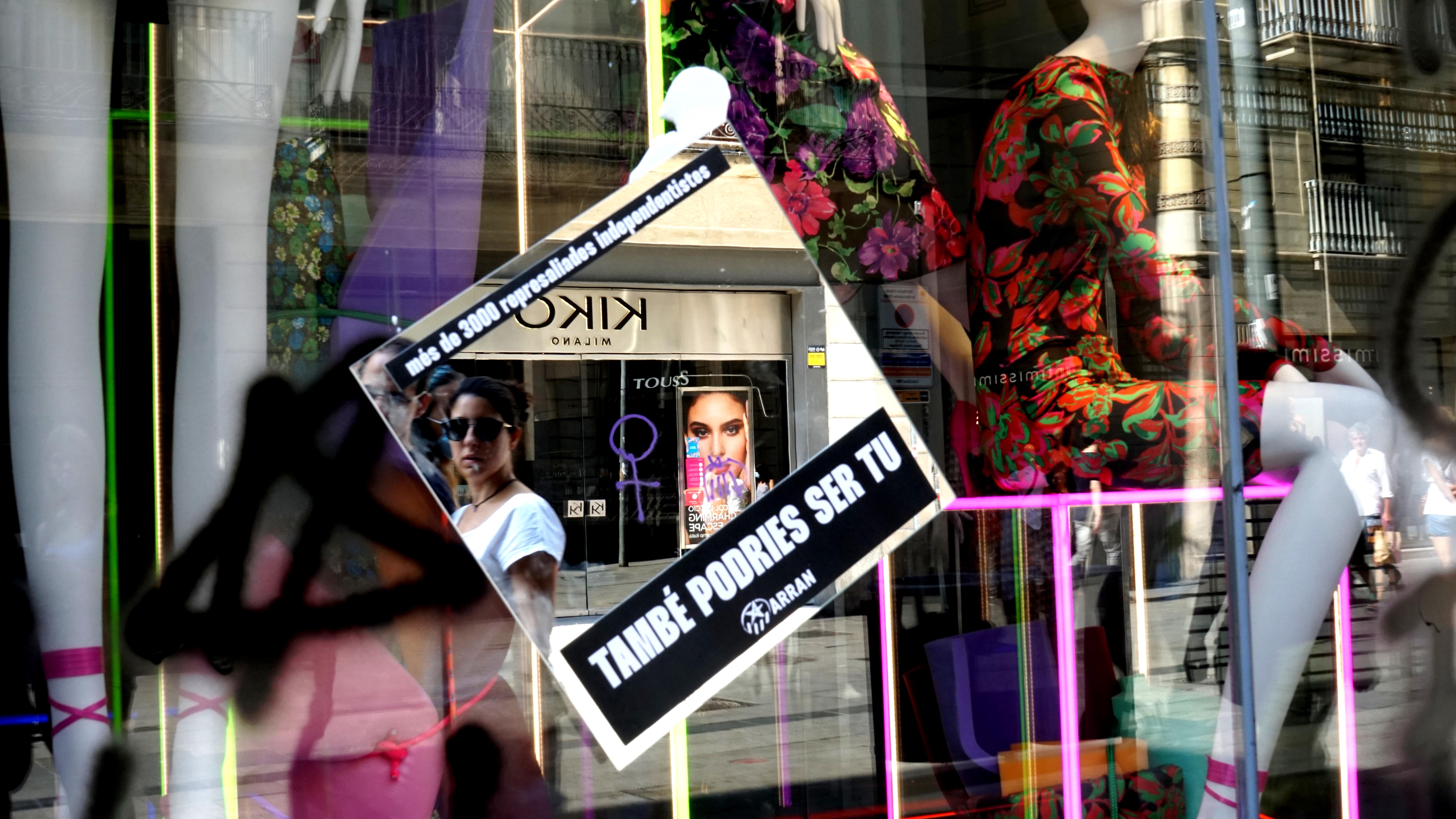 <dd class="wp-caption-text gallery-caption" id="gallery-40-26141"> Mentre la mobilització creua Portal de l’Àngel, franquícies de multinacionals reben pintades de denúncia. </dd>