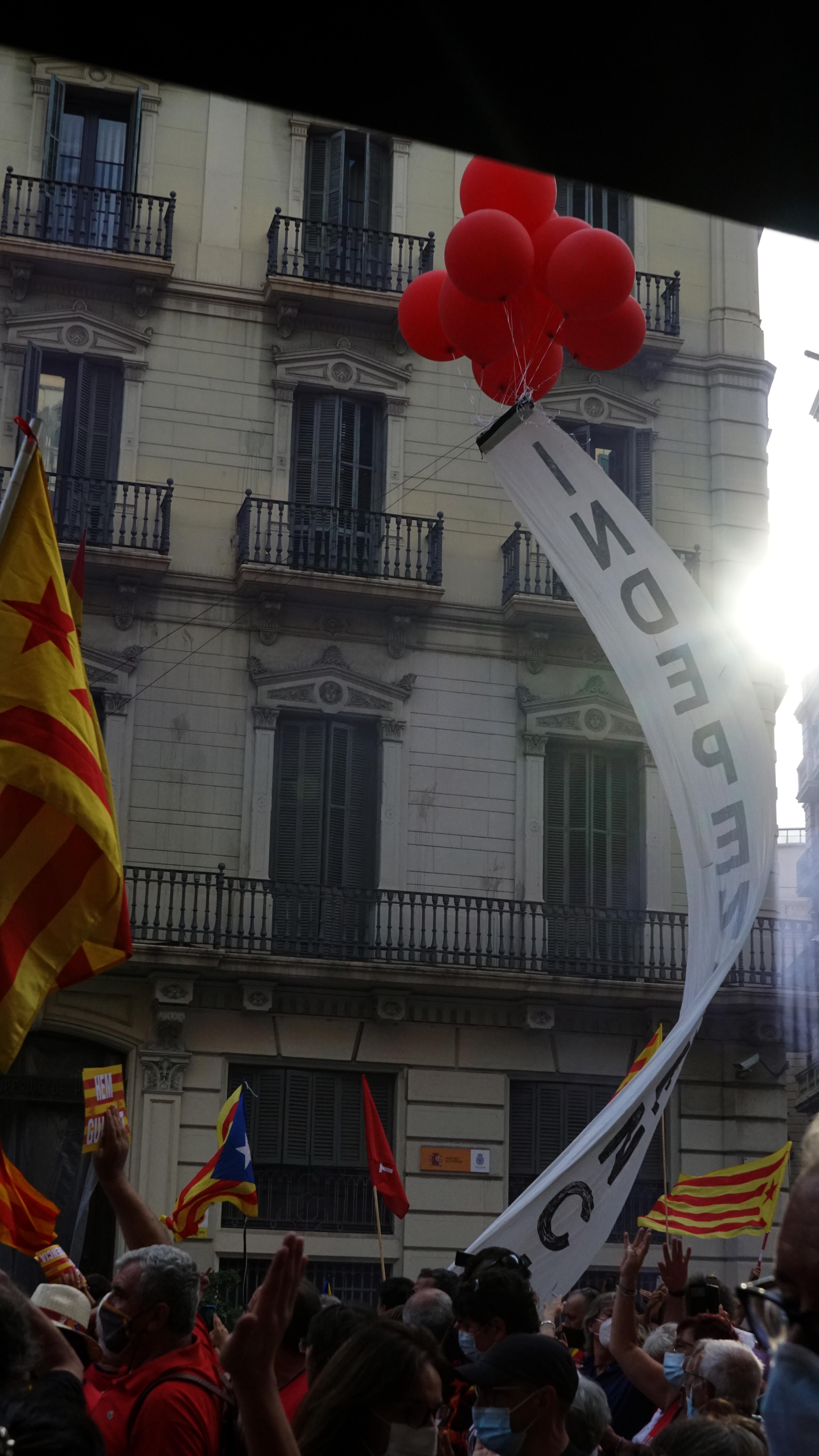 <dd class="wp-caption-text gallery-caption" id="gallery-40-26145"> Pancarta alçada amb globus davant la prefectura de policia nacional durant la mobilització de les entitats sobiranistes. </dd>