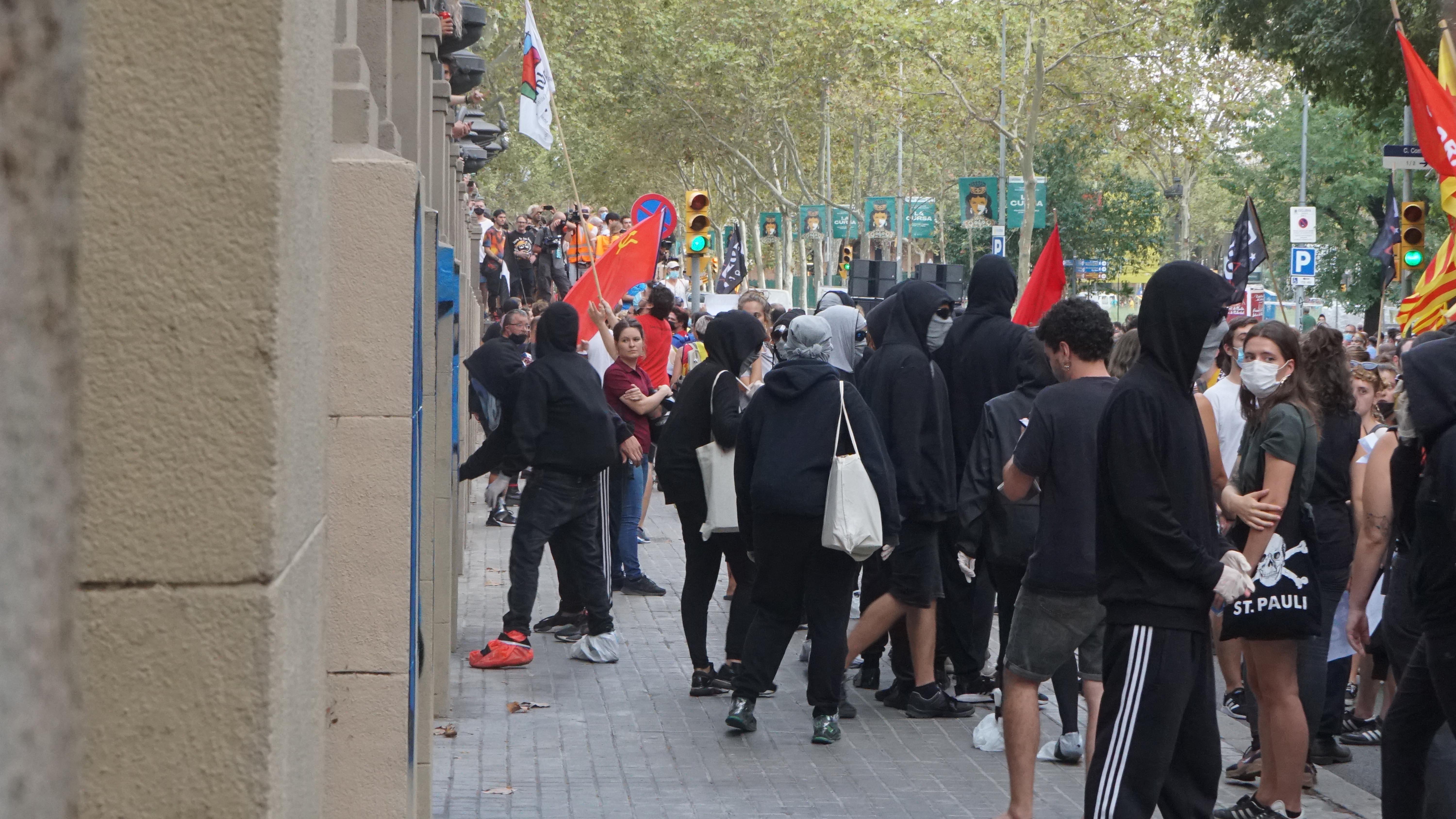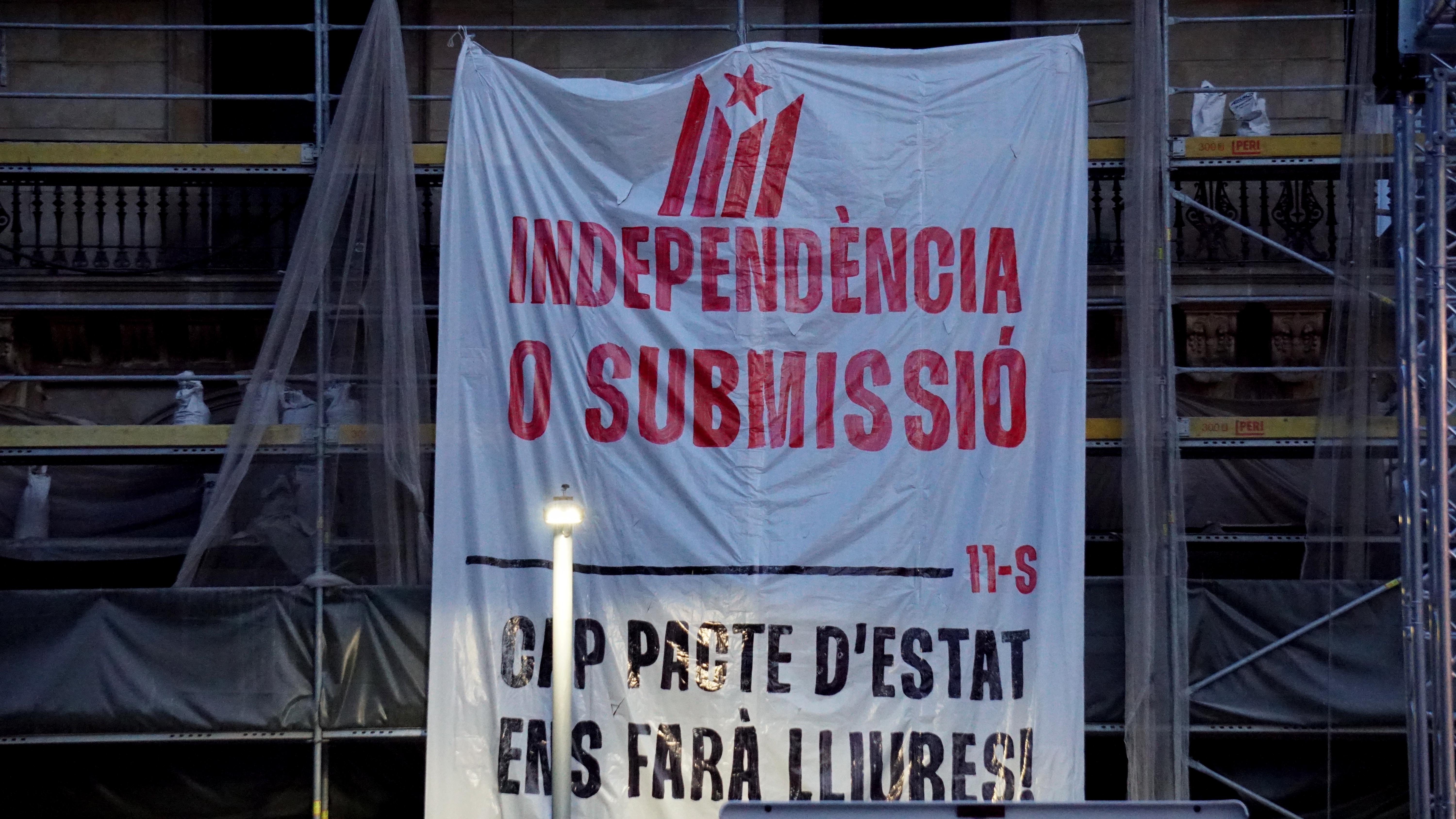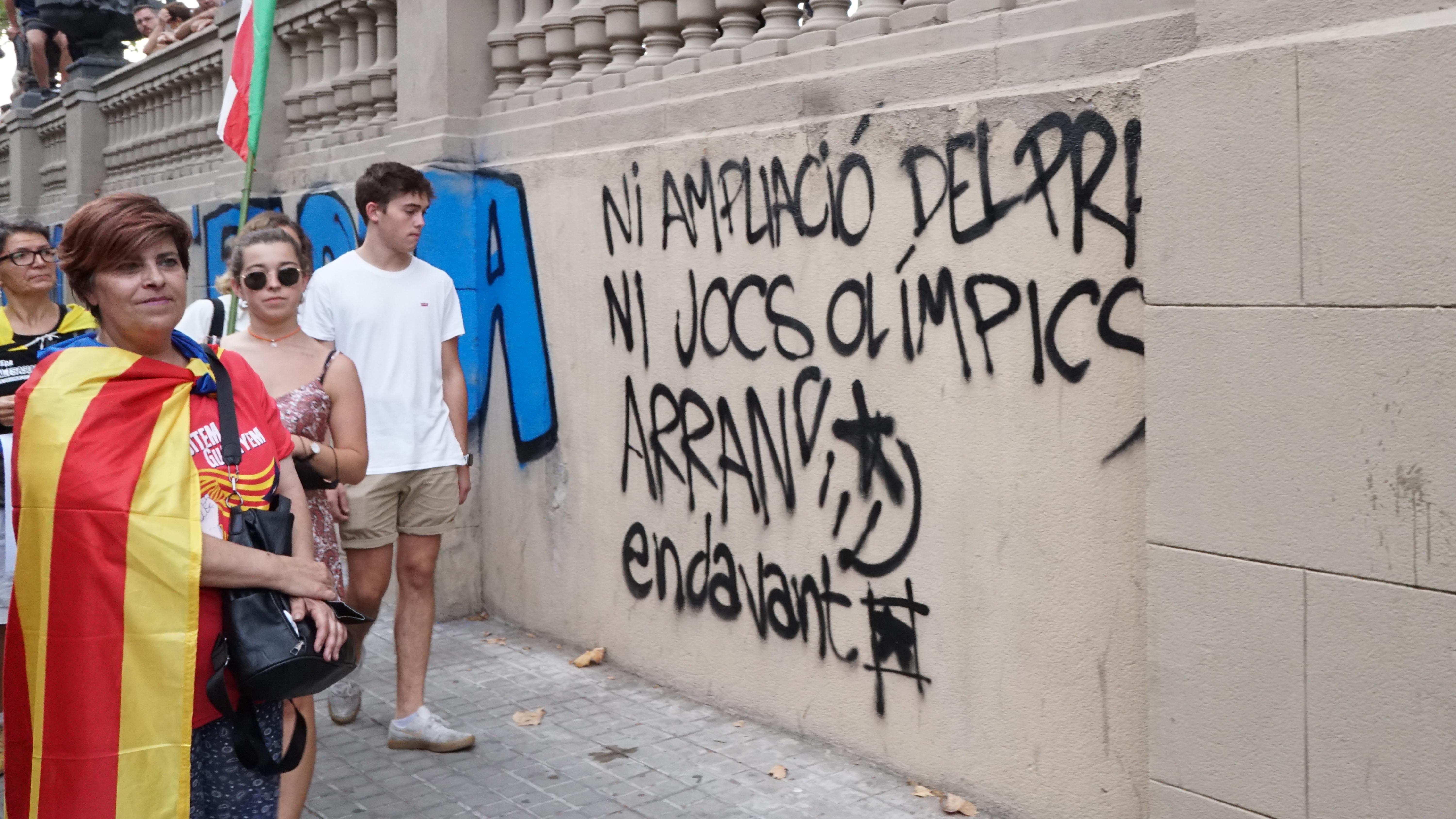 <dd class="wp-caption-text gallery-caption" id="gallery-40-26156"> Durant tot el dia les pancartes han estat presents a l’espai. La matinada del 10 a l’11 els mossos han carregat contra qui les penjava fracturant-li el braç a un militant independentista. </dd>