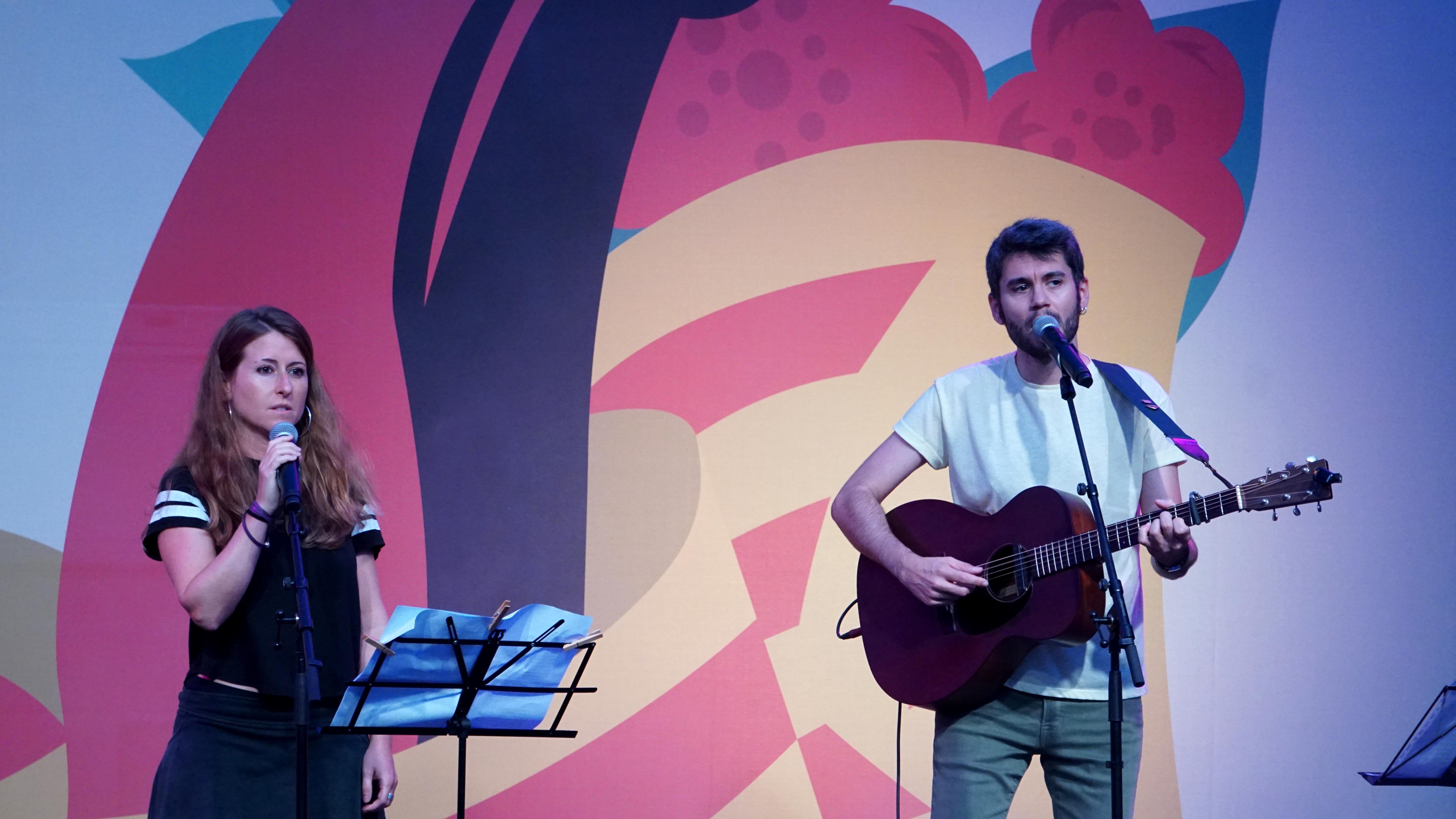 <dd class="wp-caption-text gallery-caption" id="gallery-40-26155"> Aina Torres i Jordi Montañez han fet l’apunt lúdic i cultural a la jornada reivindicativa. </dd>