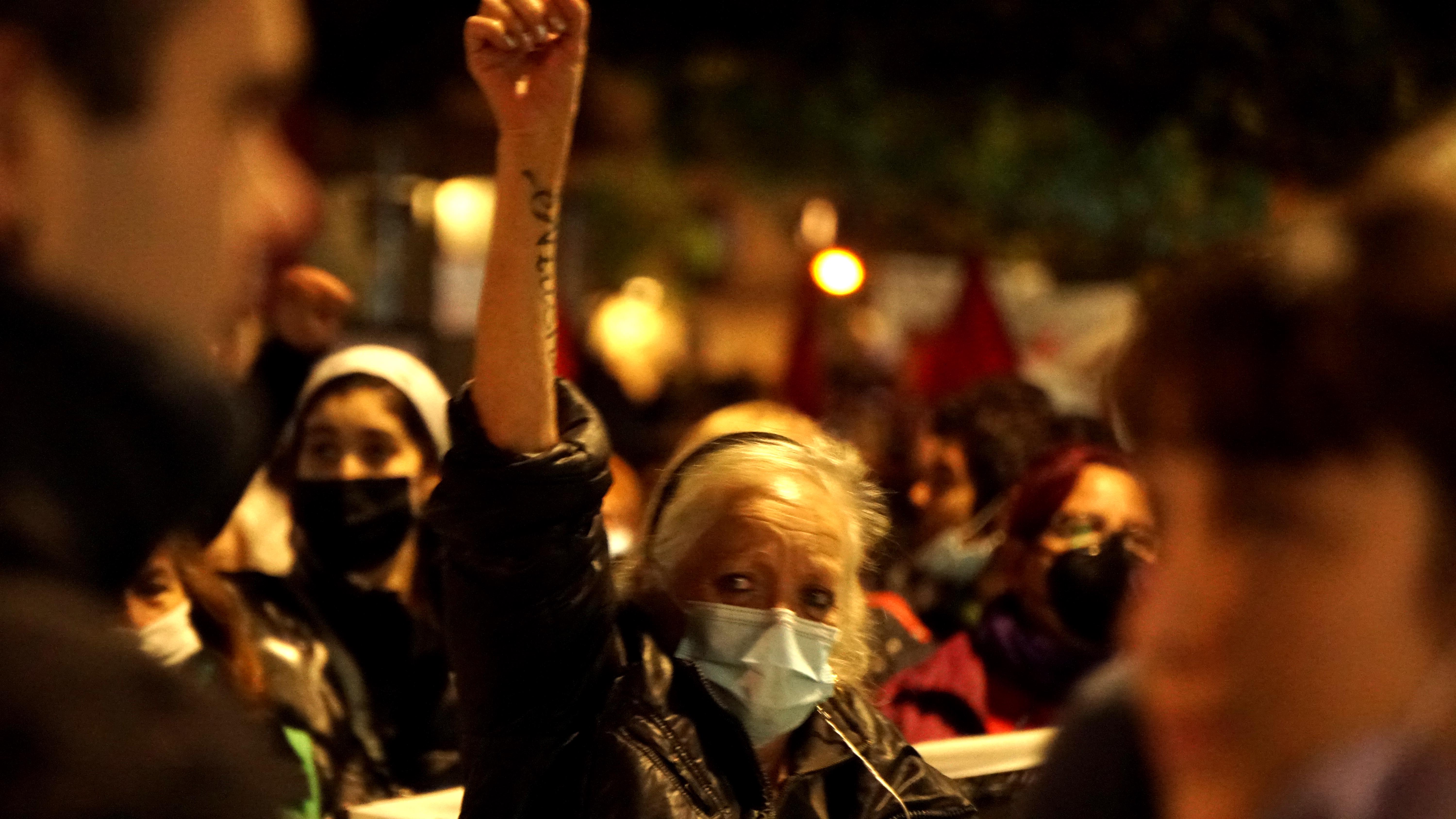 <dd class="wp-caption-text gallery-caption" id="gallery-42-26322"> Un manifestant interpel•la a la resta de veïnes que veuen passar la mobilització </dd>