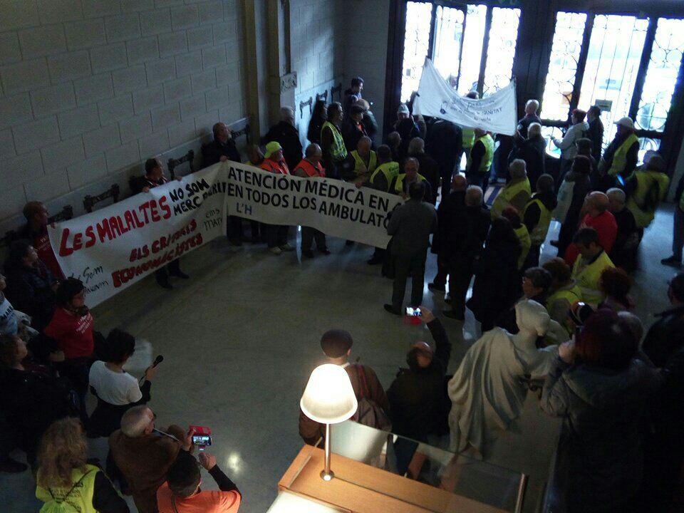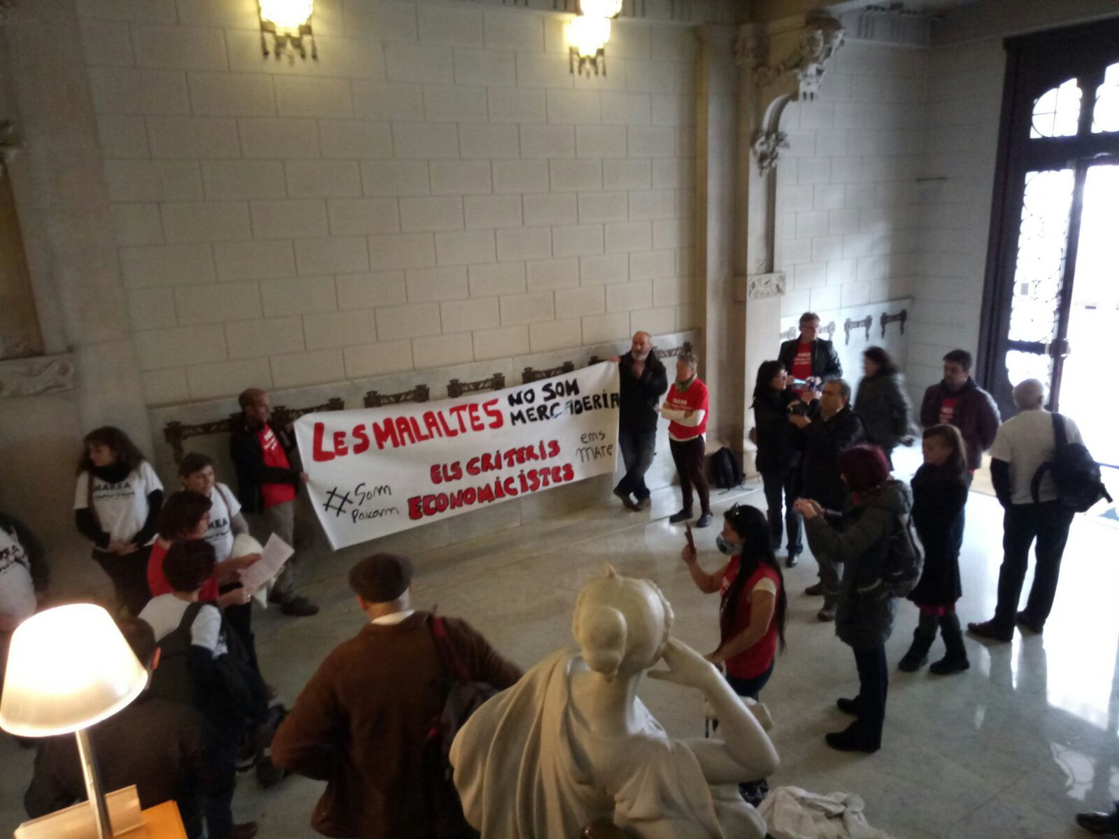 Dimarts 28 de febrer, la PAICAM i la Marea Blanca han ocupat el departament de la Vicepresidència i d’Economia i Hisenda, a Barcelona. Exigien reunir-se amb el vicepresident econòmic, Oriol Junqueras, per tal que s’implementessin 100M€ per a les llistes d’espera de la sanitat pública. En surten amb el compromís del Secretari d’Economia, Pere Aragonès, que s’ho miraran i s’hi reuniran la setmana vinent.