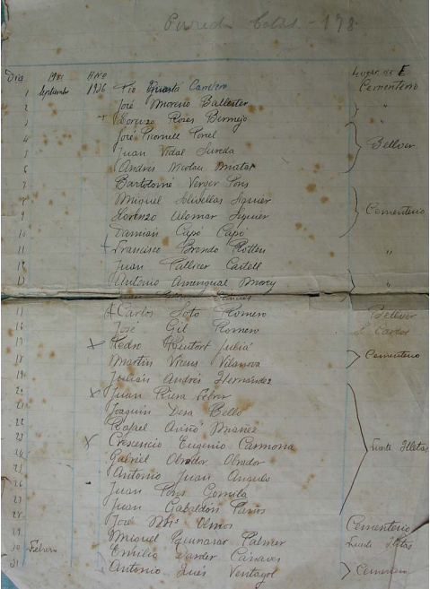 Llistat d’afusellats pels franquistes al cementiri de Palma, febre-setembre 1937.