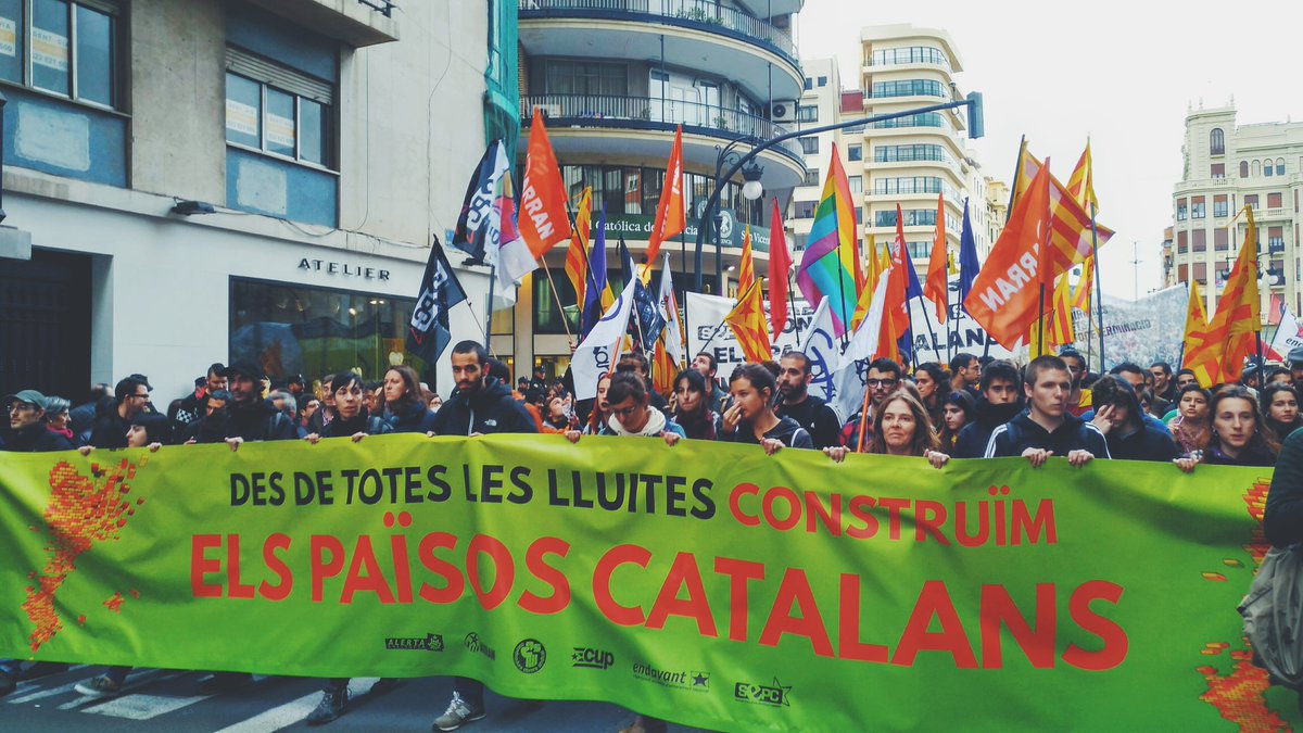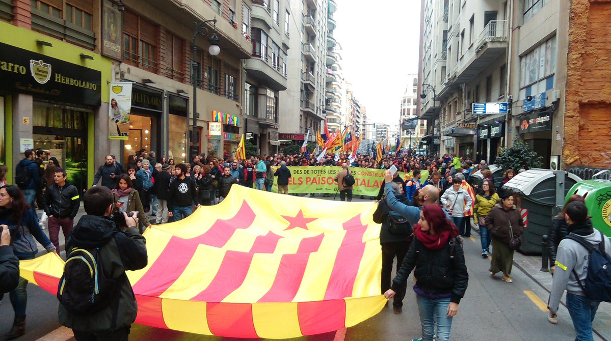 La convocatòria de les organitzacions de l’esquerra independentista, Arran, CUP, Endavant, COS i SEPC, que portava per lema “Des de totes les lluites, construïm els Països Catalans”, va aplegar uns 5.000 manifestants, essent com cada any una de les més nombroses i animades, malgrat l’assetjament i provocació de la policia espanyola i d’elements ultres, i també malgrat l’habitual silenciament i ocultació dels seus lemes i reivindicacions per part de la premsa, que només s’ha fet ressò de les consignes autonomistes.