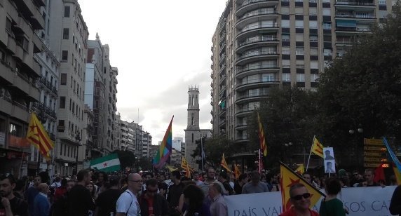 Al matí, independentistes i antifeixistes denunciaven la presència de grups feixistes a la processó cívica al mateix que temps que denunciaven la “hipocresia dels governs del canvi”, en paraules d’un portaveu d’Endavant de l’Horta. A la tarda, els blocs de l’Esquerra Independentista i l’antifeixista esdevenien el conglomerat més nombrós de la manifestació, ja que van aglutinar més de 1000 persones que no van deixar de fer càntics tota l’estona. Els parlaments finals van dibuixar el treball de l’Esquerra Independentista en la construcció d’uns Països Catalans socialistes i feministes.
