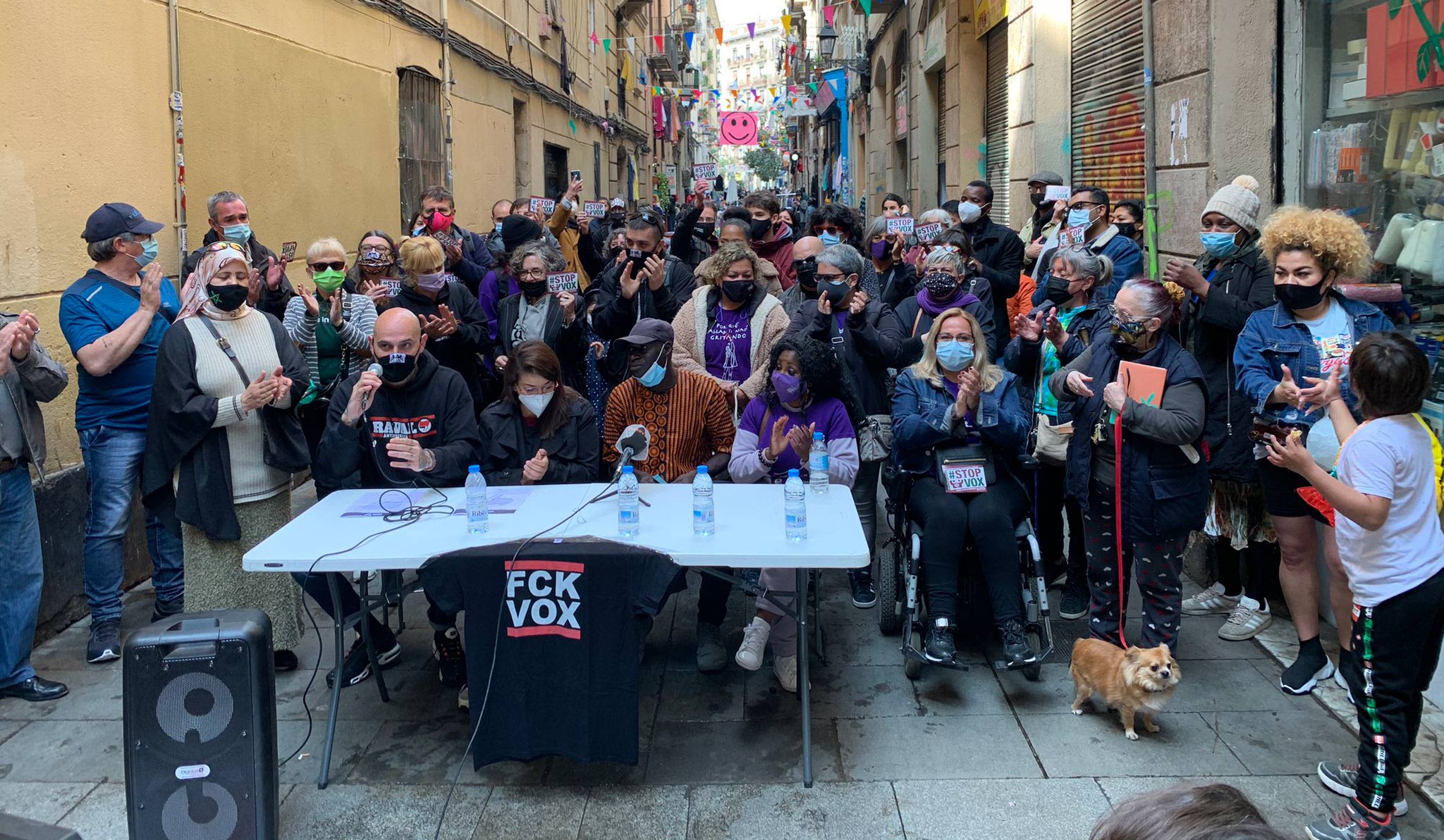 El setembre del 2020 una comitiva del partit ultradretà Vox, formada per Ignacio Garriga, Rocio de Meer i Jordi de la Fuente, va iniciar una passejada pel barri barceloní del Raval amb la intenció de parlar amb els veïns dels “problemes de la immigració i la delinqüència.” Feia poc que havien transcendit, a través de la televisió i la premsa, unes afirmacions fetes pels mateixos diputats d’aquesta comitiva on s’anomenava al barri “estercolero multicultural” i s’insultava a bona part del seu veïnat, posant especial èmfasi en uns quants menors d’edat, a qui anomenen Menas. La passejada no havia estat anunciada amb antel.lació però, si bé els primers vianants van tractar amb fredor i indiferència aquella migrada processó de polítics i policies secretes, el veïnat més organitzat va improvisar plantar cara al seu discurs. En pocs minuts s’havia reunit una vuitantena de veïnes vinculades a diverses entitats i, simplement, es va fer via cap a on eren per deixar-los clar que els seus insults no eren benvinguts: “fora racistes dels nostres barris.” Se’ls hi va dir en actitud cívica. Això i poc més. Pel fet que molta de la gent que passava per alli i es va assabentar de qui eren, així com la de la majoria de balcons i finestres a qui les consignes van cridar l’atenció, s’afegissin espontàniament al rebuig cap a tot el que aquesta gent proclama, la comitiva es va veure molt minoritzada i, tal com insulten menors quan se senten forts, quan no se’n senten tant s’amaguen al primer lloc que troben. En aquest cas va ser un Hotel. Es van tancar allí mentre la gent llençava ous a la façana i repetia consignes “fora feixistes. Pa, sostre i treball..” Això fins que, al cap d’una estona, va aparèixer la Brimo i, després que tres dels seus membres apallissessin a una noia a cops de porra, van trucar a la porta i se’ls van endur a predicar el racisme a un altre lloc.