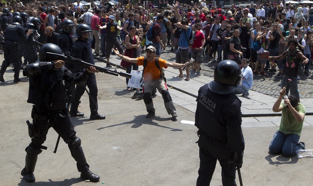 “Després del violent desallotjament de la plaça Catalunya el maig de 2011 comandaments dels mossos van assegurar que «no obeir a la policia és violència»”