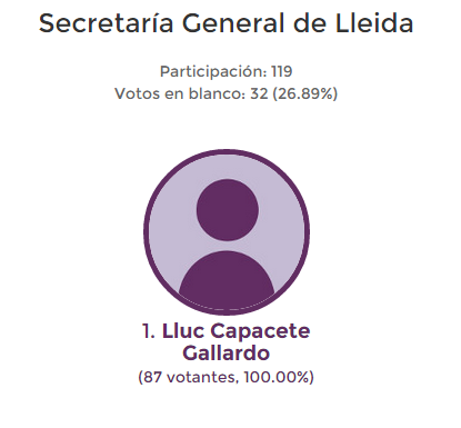 A Barcelona, l’Hospitalet i València, el secretari general ha estat triat amb el suport de menys del 14% del cens. Entre el 16% i el 19% trobaríem Lleida, Alacant i Elx. A la resta de ciutats, el secretari general hauria estat elegit sempre amb un percentatge de vots inferior al 28% (sobre les persones inscrites).